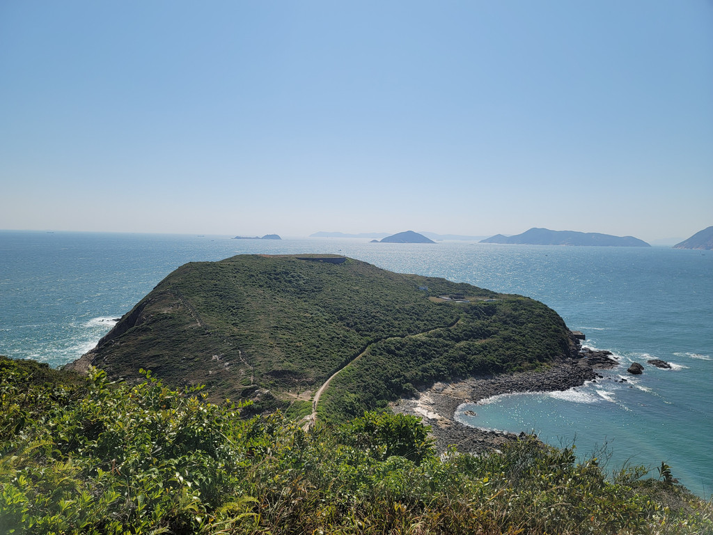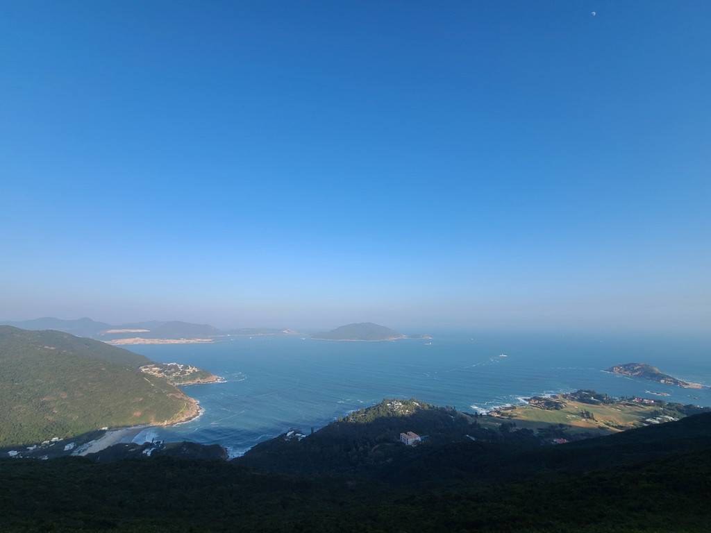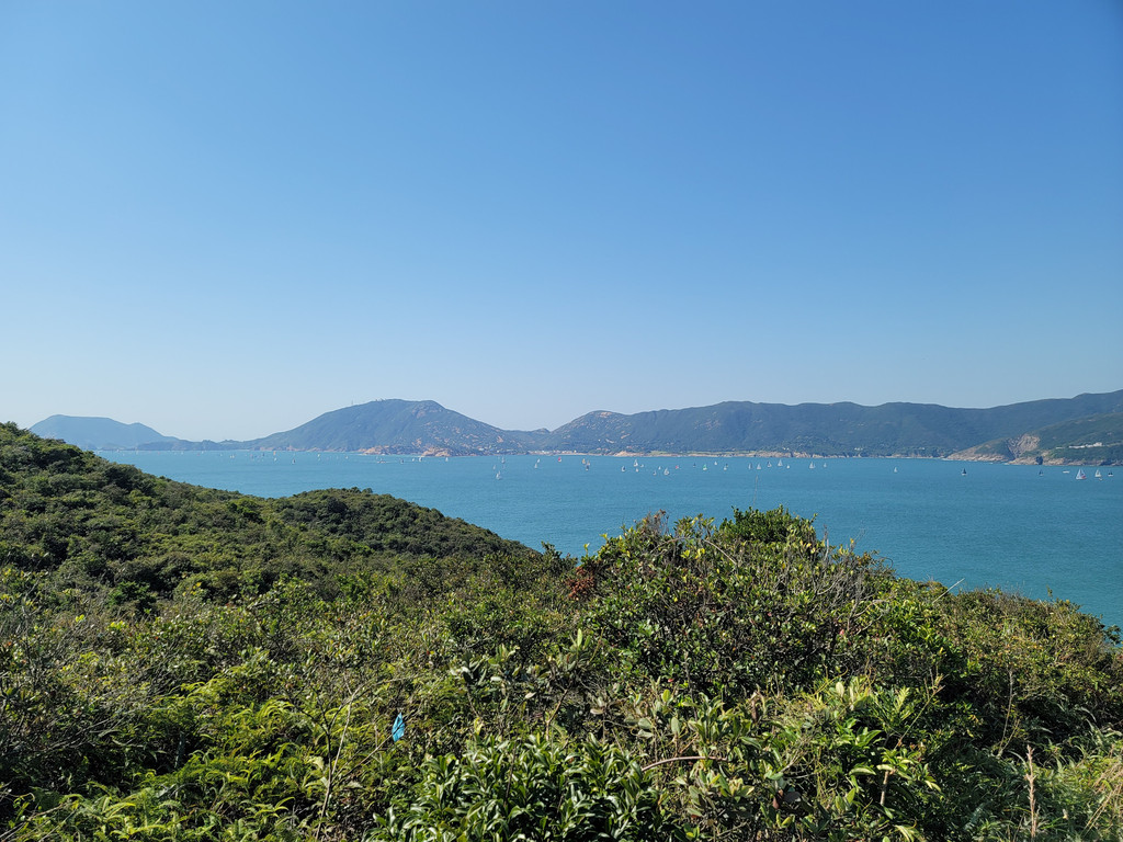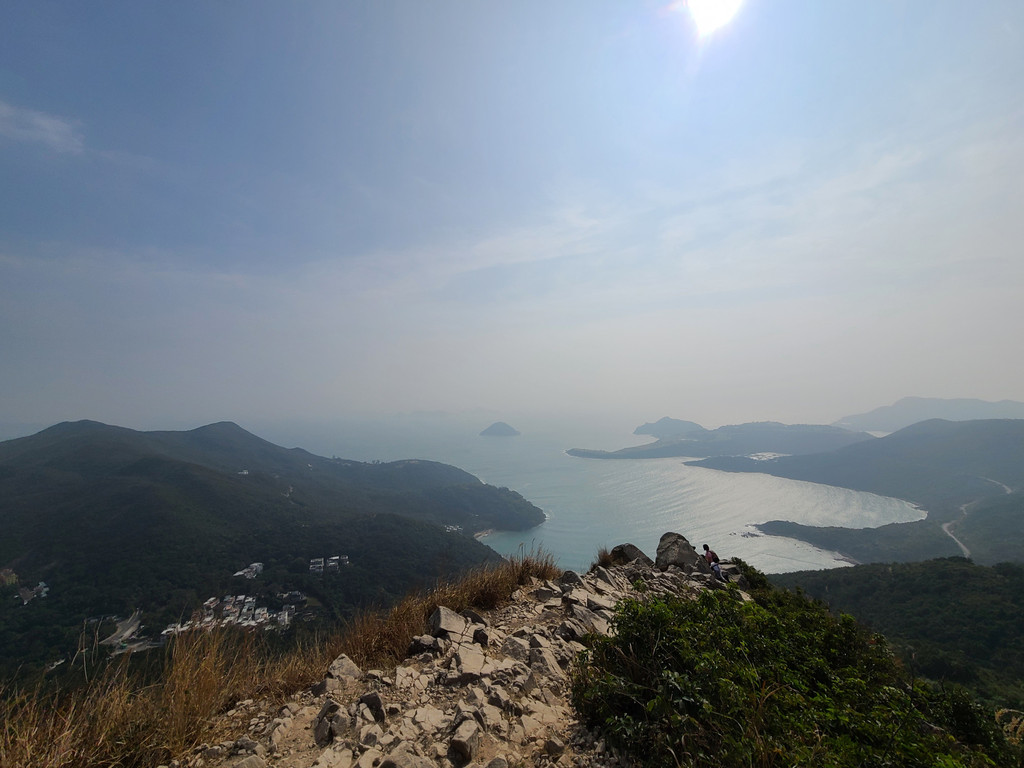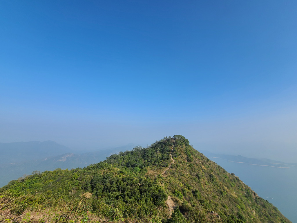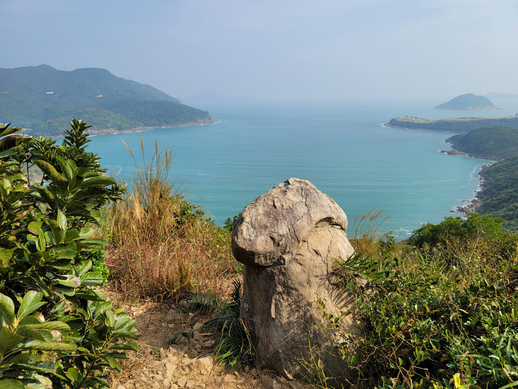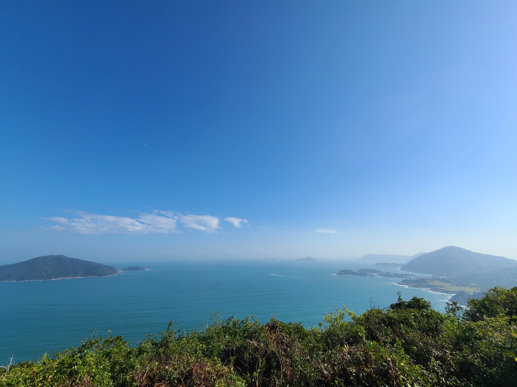 当登顶之时,太阳也终于完全打破迷雾照耀大地,从这尖顶可以360度观看清水湾半岛的景致,相思湾,清水湾一滩和二滩,布袋澳,到半岛最南端的清水湾高尔夫球乡村俱乐部,这一片香港东海岸,连接着南中国海海水无疑是最瞩目的,一路上只要有比较平整又可以看到海岸的位置,都会自然而然成为打卡位。