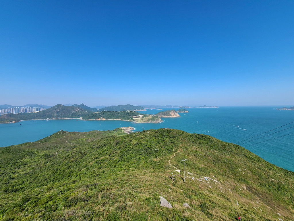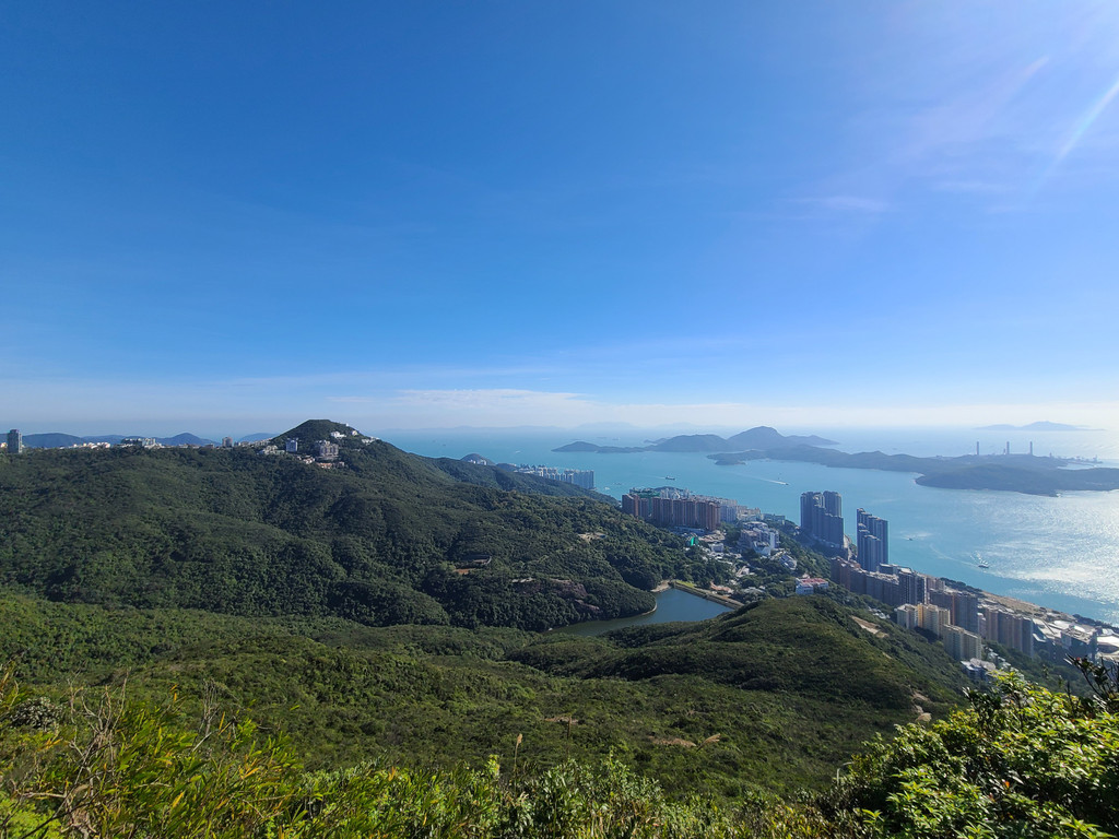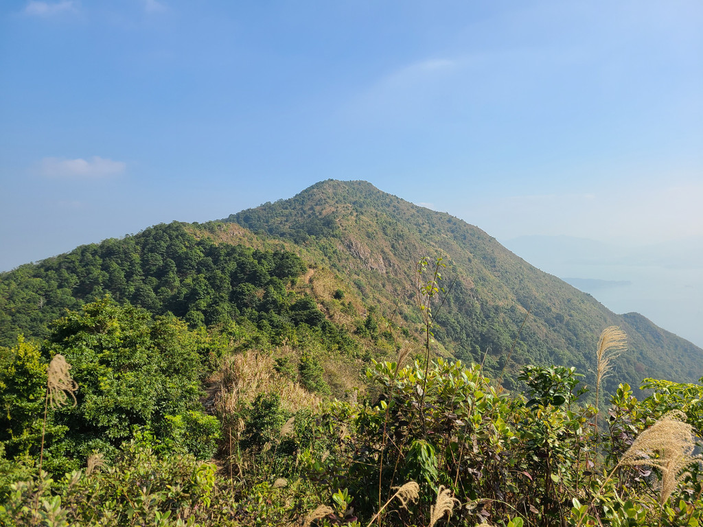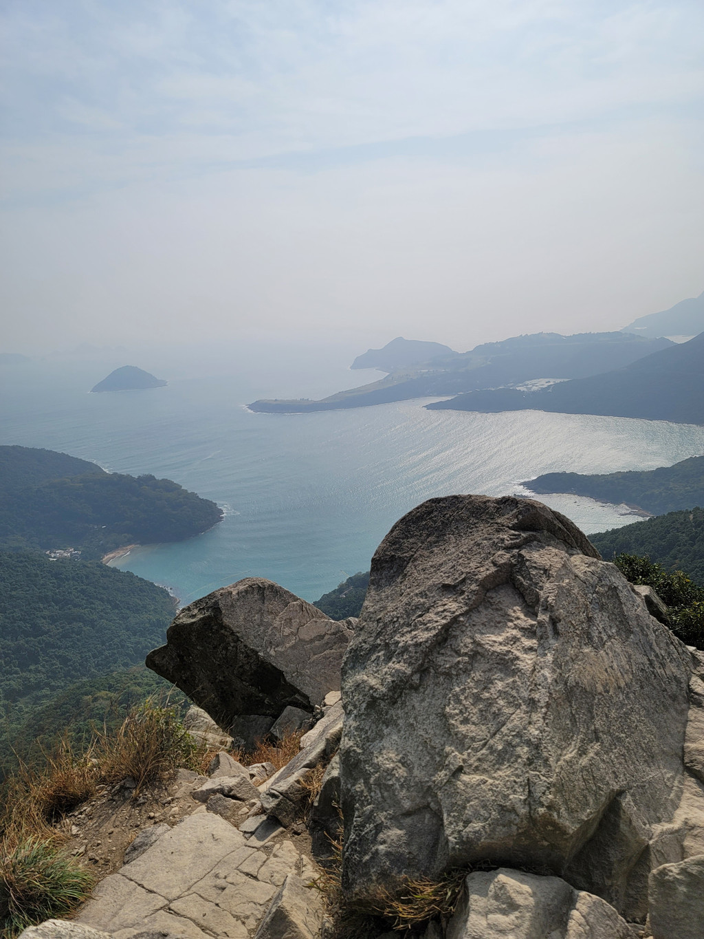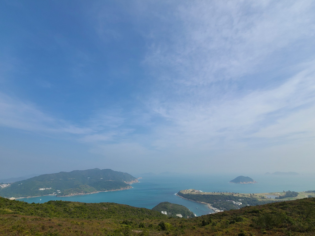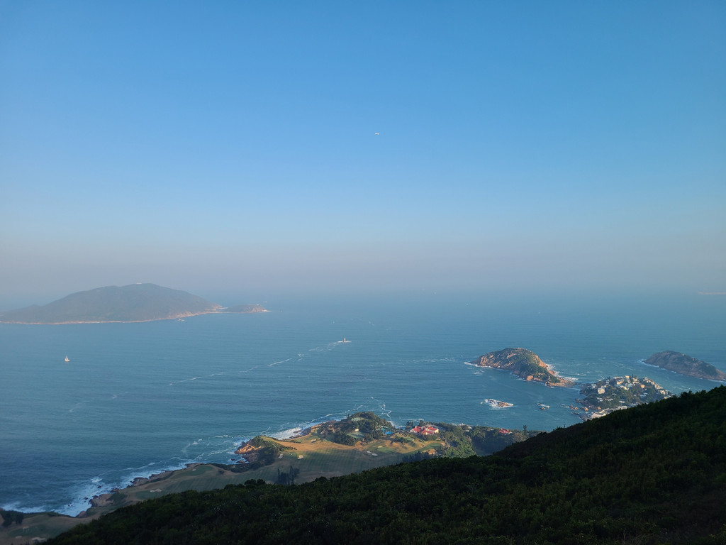 当登顶之时,太阳也终于完全打破迷雾照耀大地,从这尖顶可以360度观看清水湾半岛的景致,相思湾,清水湾一滩和二滩,布袋澳,到半岛最南端的清水湾高尔夫球乡村俱乐部,这一片香港东海岸,连接着南中国海海水无疑是最瞩目的,一路上只要有比较平整又可以看到海岸的位置,都会自然而然成为打卡位。