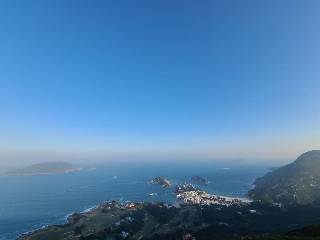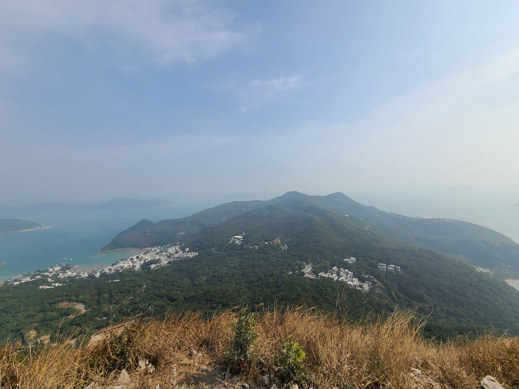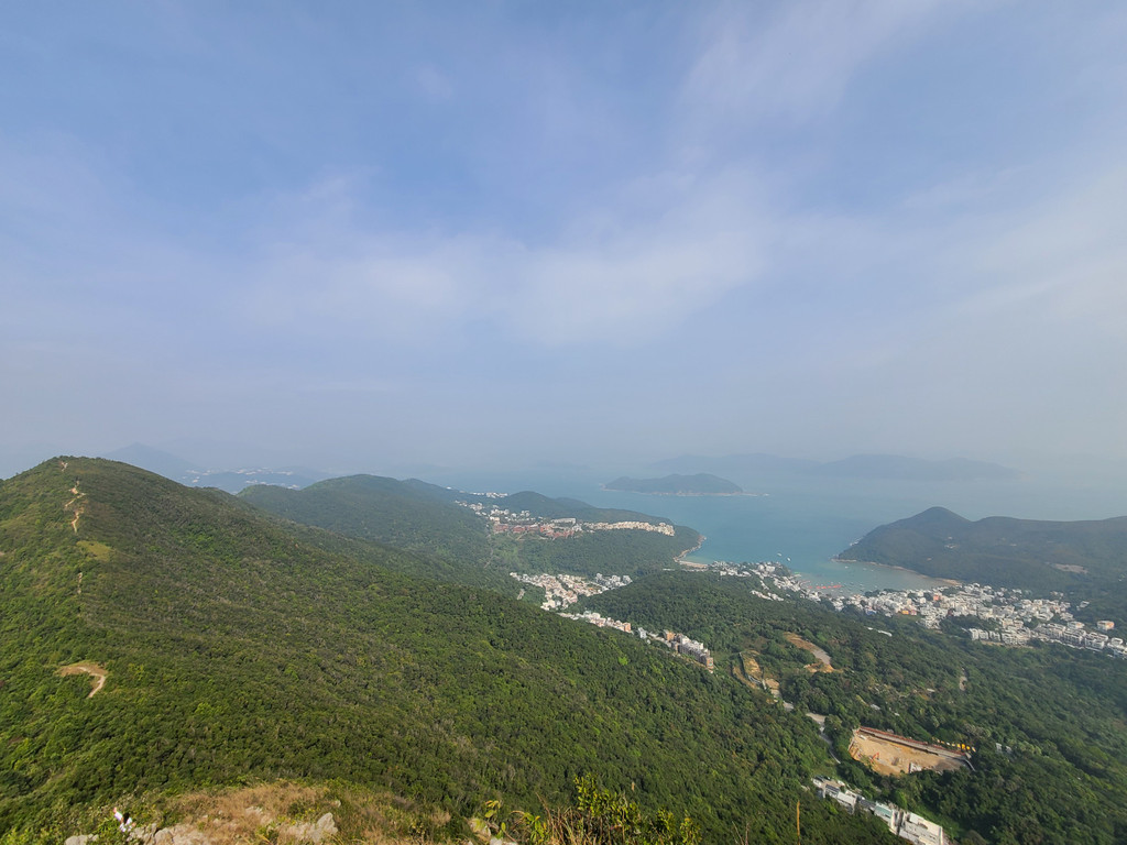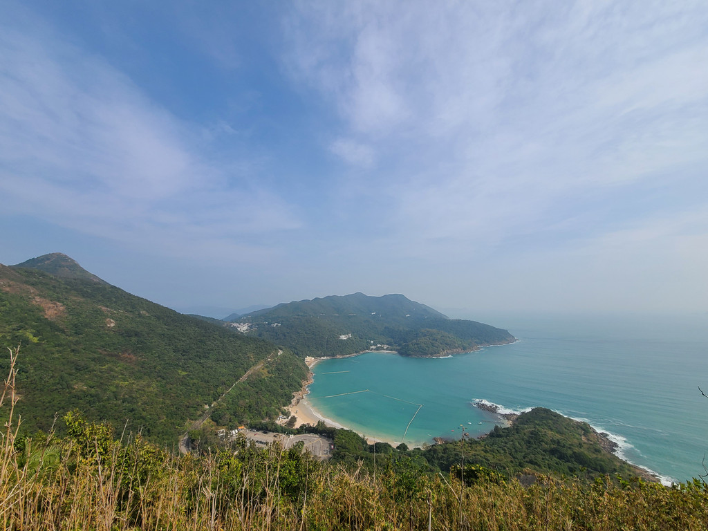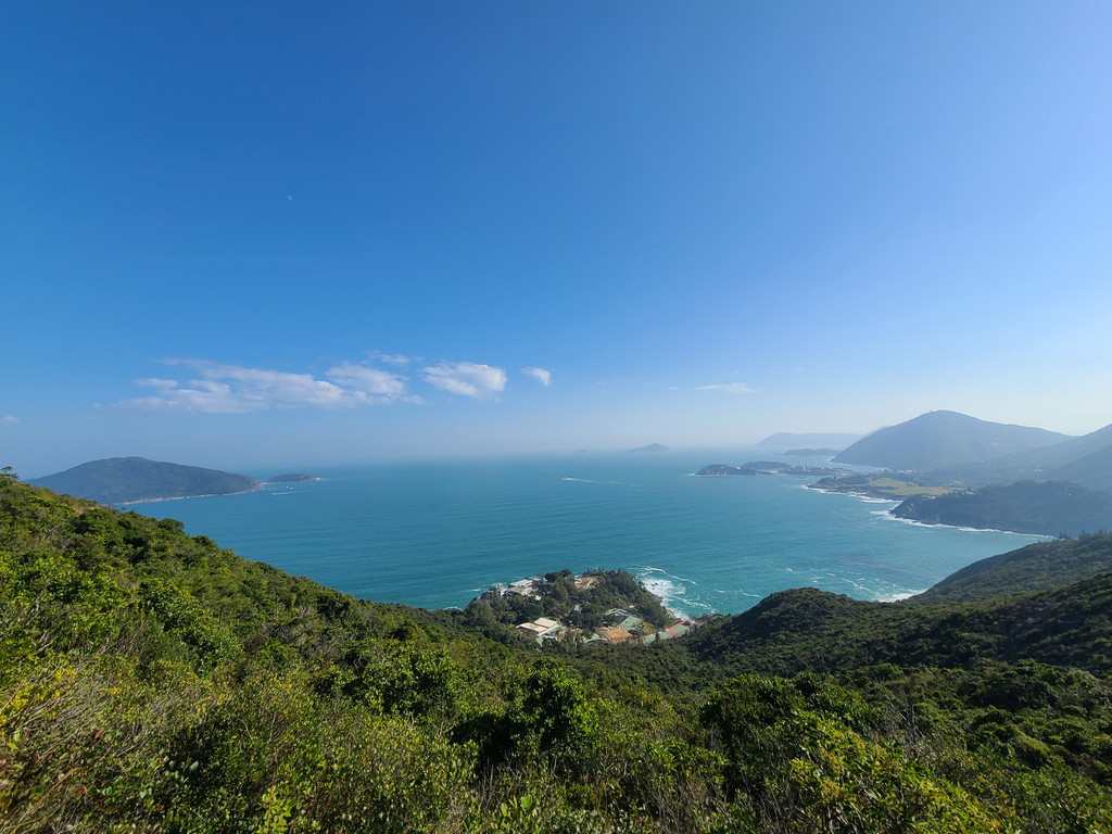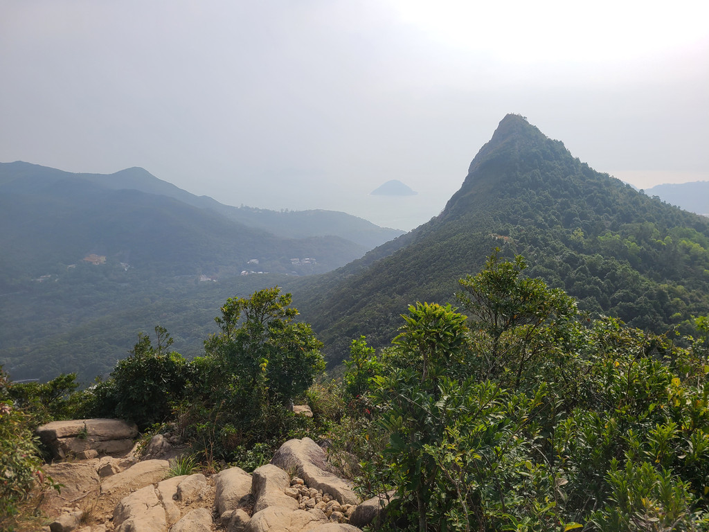 当登顶之时,太阳也终于完全打破迷雾照耀大地,从这尖顶可以360度观看清水湾半岛的景致,相思湾,清水湾一滩和二滩,布袋澳,到半岛最南端的清水湾高尔夫球乡村俱乐部,这一片香港东海岸,连接着南中国海海水无疑是最瞩目的,一路上只要有比较平整又可以看到海岸的位置,都会自然而然成为打卡位。