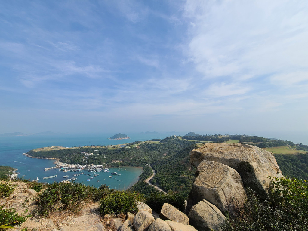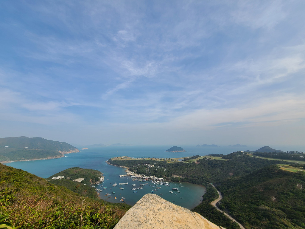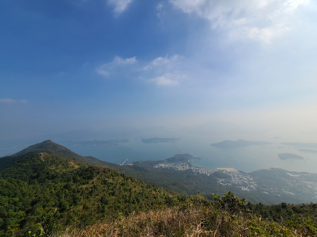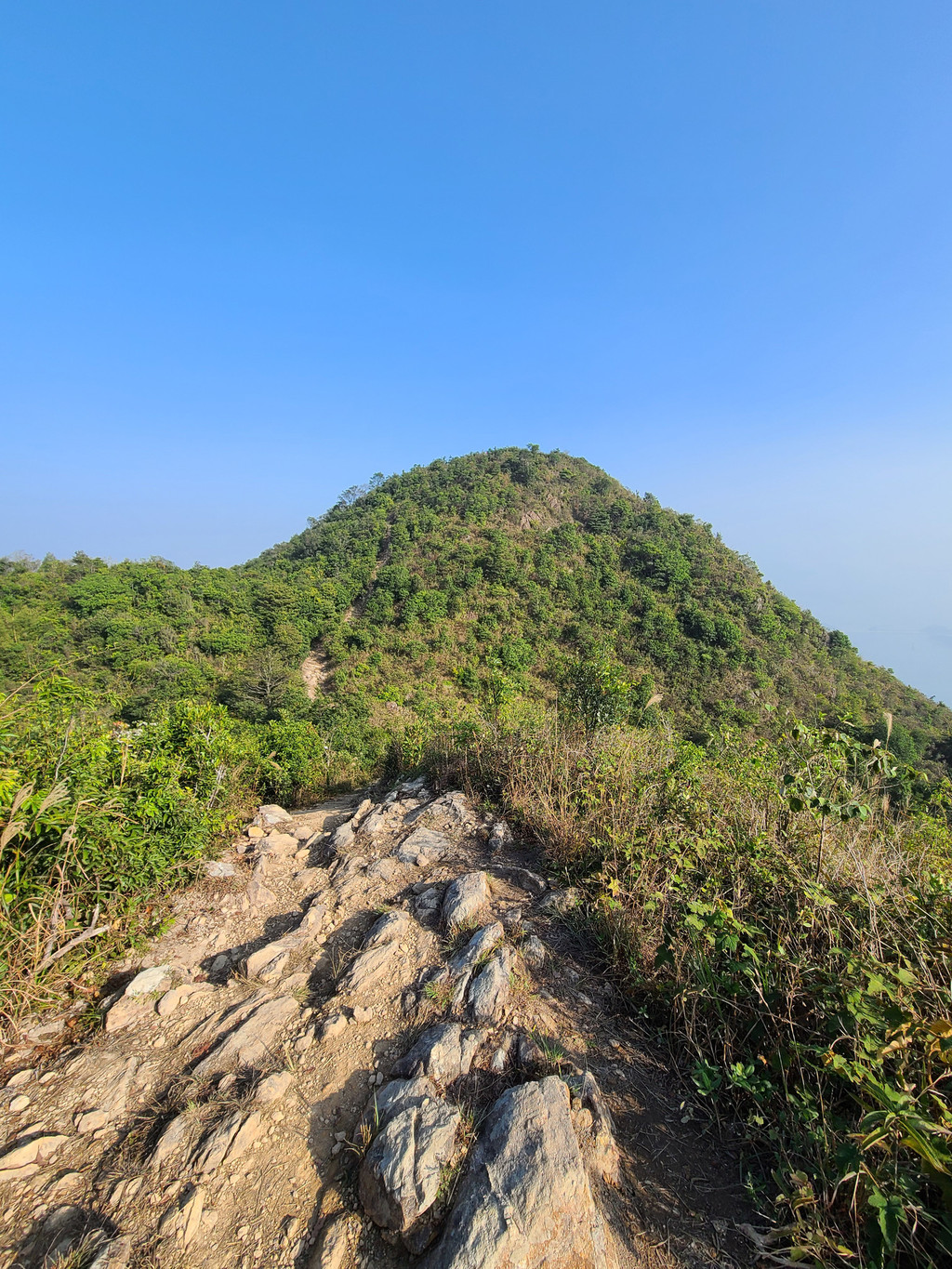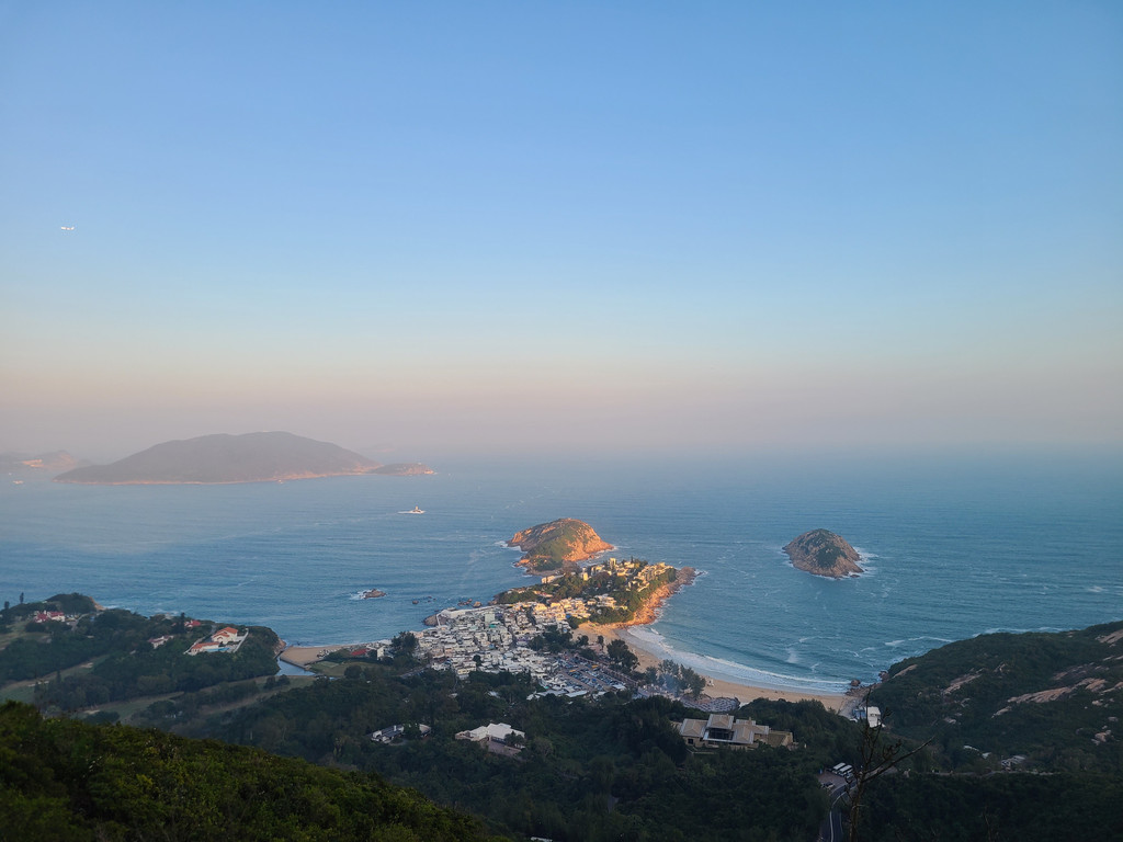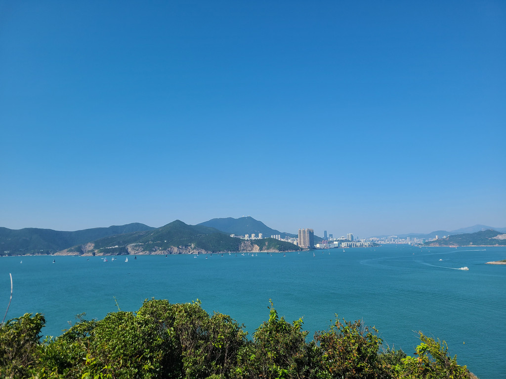 当登顶之时,太阳也终于完全打破迷雾照耀大地,从这尖顶可以360度观看清水湾半岛的景致,相思湾,清水湾一滩和二滩,布袋澳,到半岛最南端的清水湾高尔夫球乡村俱乐部,这一片香港东海岸,连接着南中国海海水无疑是最瞩目的,一路上只要有比较平整又可以看到海岸的位置,都会自然而然成为打卡位。