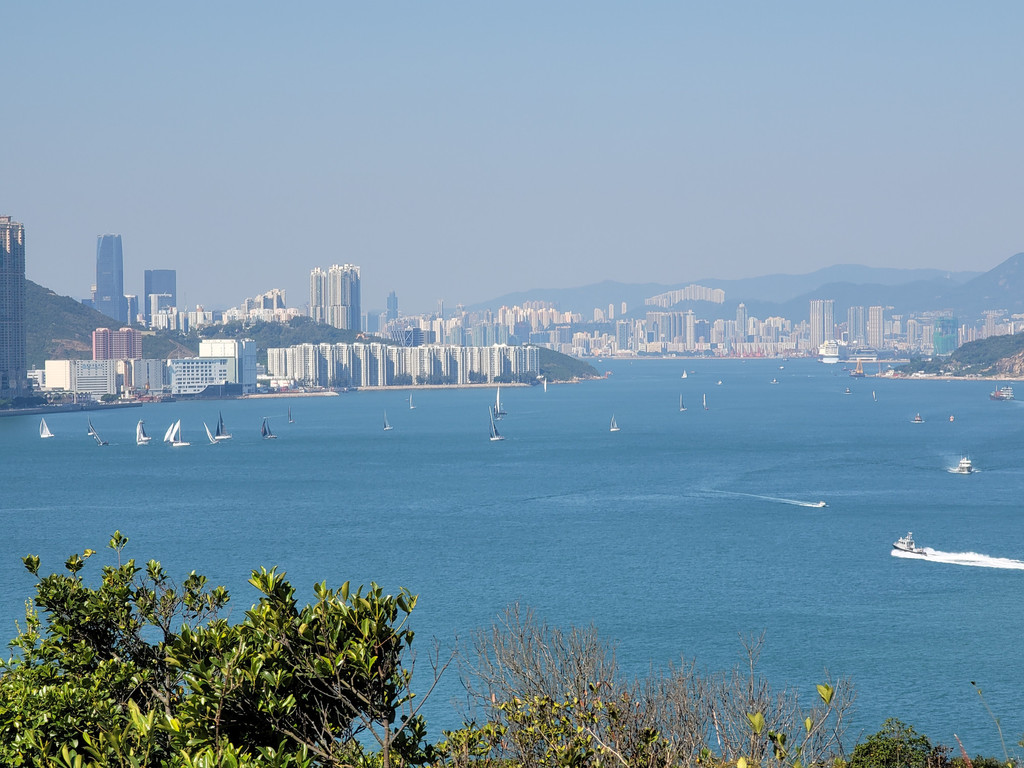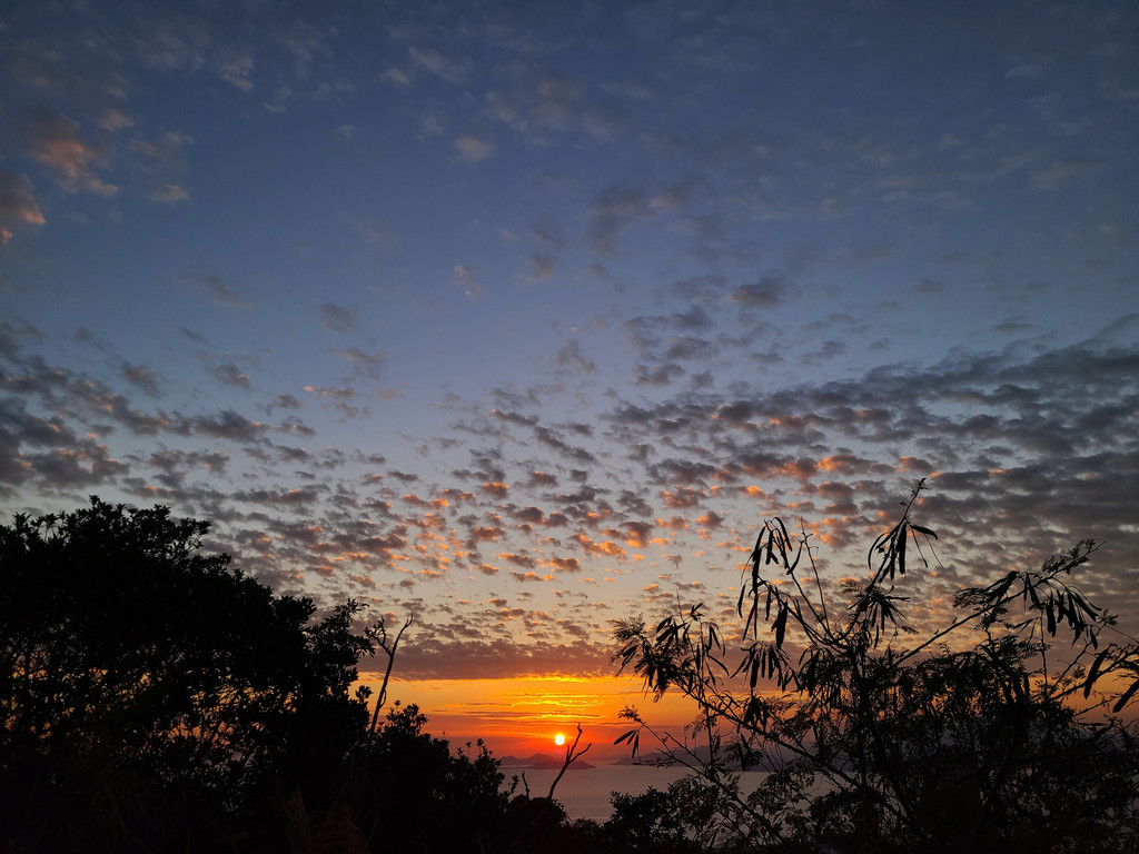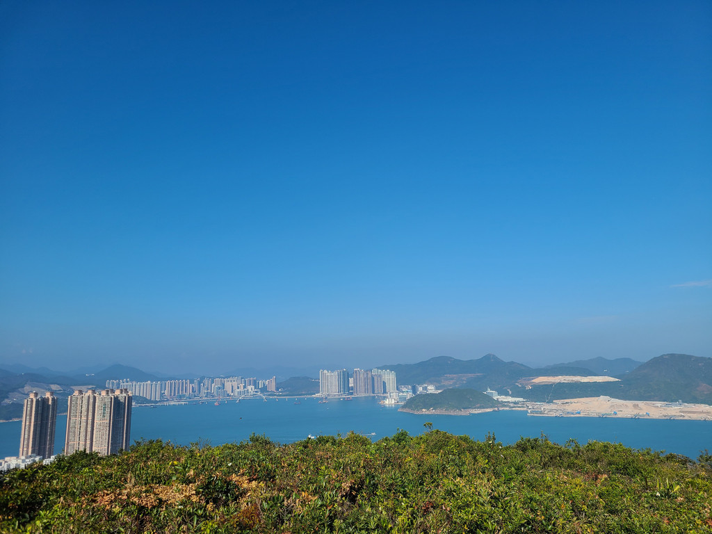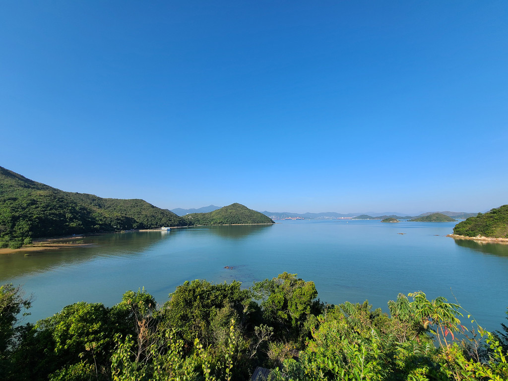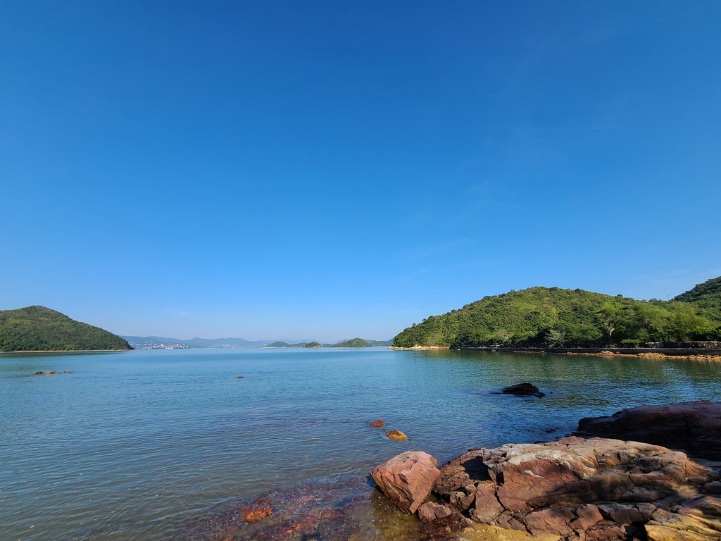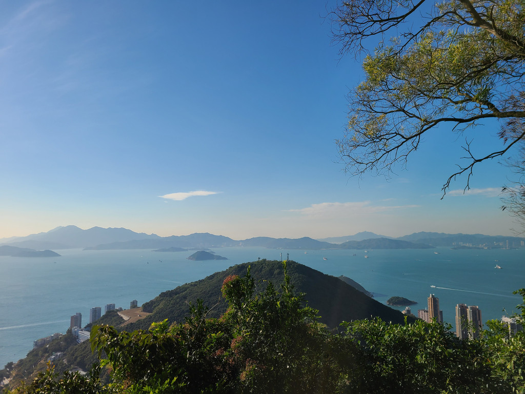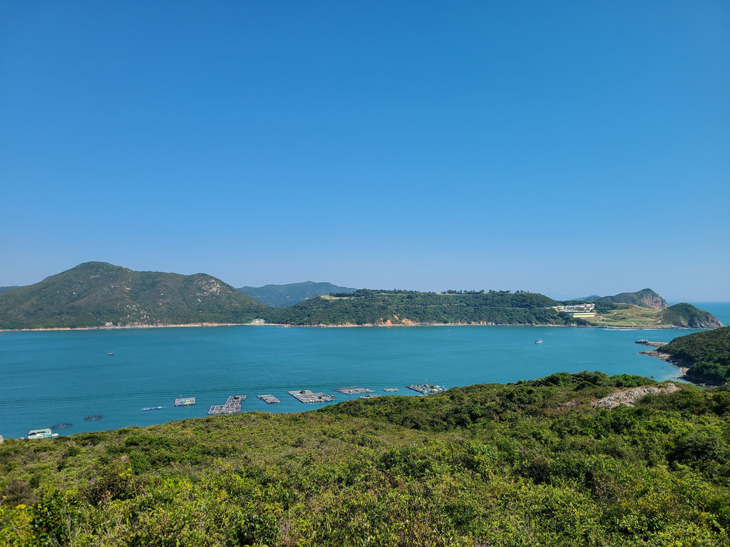当登顶之时,太阳也终于完全打破迷雾照耀大地,从这尖顶可以360度观看清水湾半岛的景致,相思湾,清水湾一滩和二滩,布袋澳,到半岛最南端的清水湾高尔夫球乡村俱乐部,这一片香港东海岸,连接着南中国海海水无疑是最瞩目的,一路上只要有比较平整又可以看到海岸的位置,都会自然而然成为打卡位。
