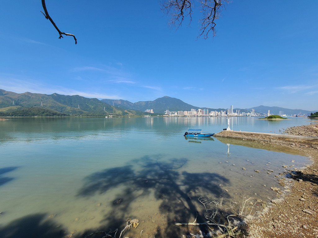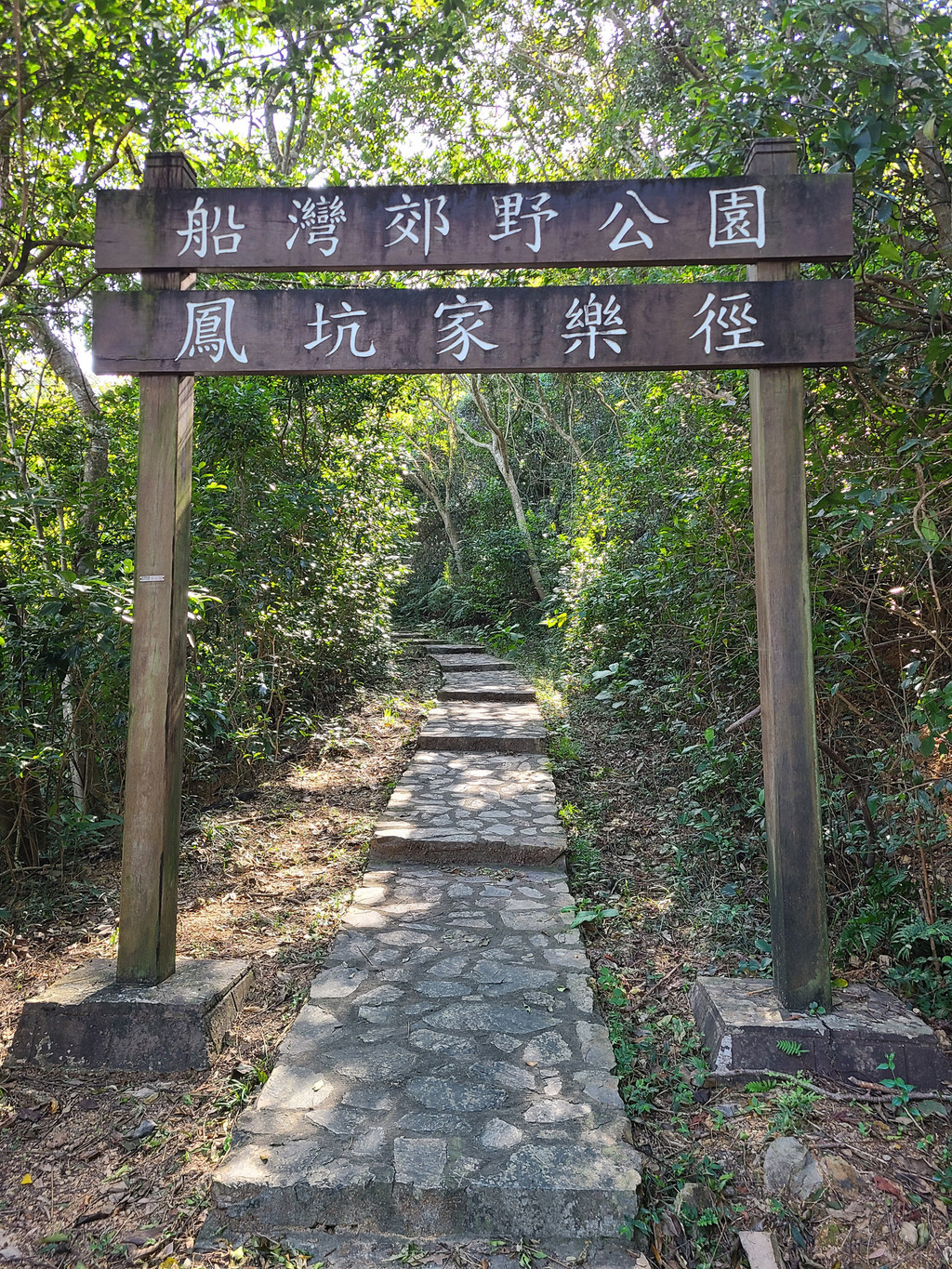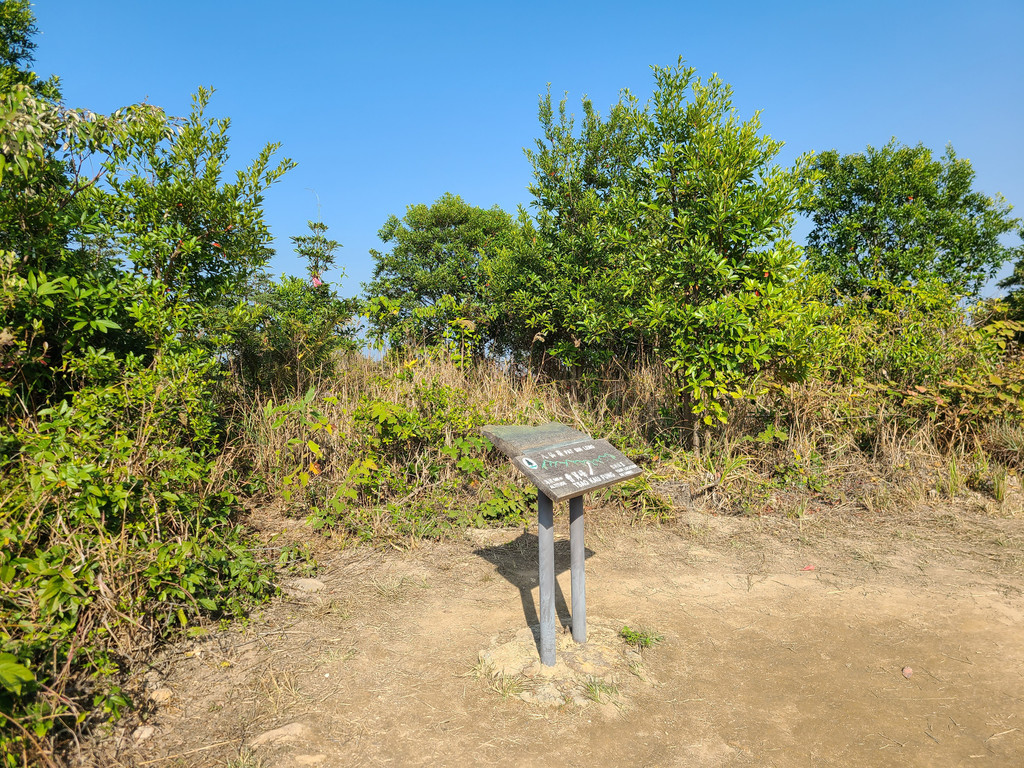 不过为了避免走夜路,我们在这里离开海边,开始回程的路,所以计划中的鹿颈到乌蛟腾的环线只能在中间暂停。因为深秋入夜很早,启动赶路模式,不是徒步鞋的问题开始更加明显,幸好大多是泥土山路,在干燥的秋天,几乎没有抓地力的运动鞋还可以应付。迎着渐渐西沉的秋日,山林之间行走,也算是一件乐事。在整段路的高点,在乌蛟腾郊游径观景台,可以远眺大部分的船湾景致,算是整个回程路上的最大亮点。