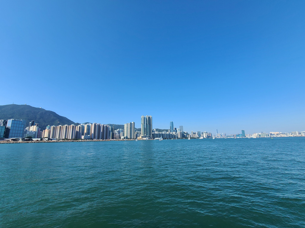 冬日的太阳下山早,临近置富花园路上被黄昏的景致吸引住,于是停留在一个可以勉强远眺海山连接的位置。为了看到那咸蛋黄般的夕阳,等待是值得的。