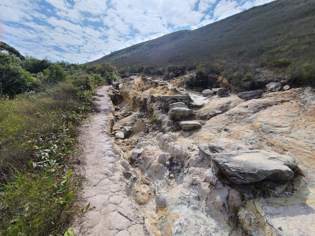 补完乌蛟腾到鹿颈的环线未行走的路途,即便8点半出发,乌蛟腾也是没有办法找到停车位,改为从降下坳出发前往荔枝窝。这一路都是上次离开时的相同路线,不过经过前几天的几场雨水,熟悉的路况变得湿滑,特别是一些石头裸露的路面,需要额外小心行走。