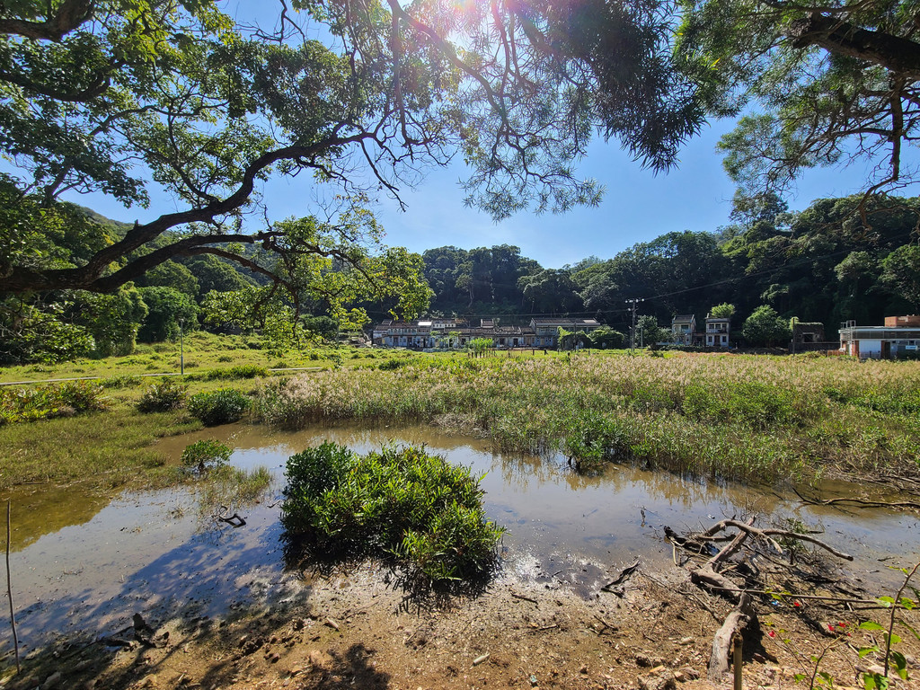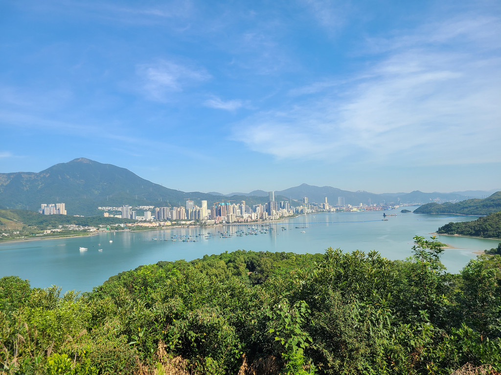 沿着家乐径上行,有个不显眼的观景台,可以远眺整个盐田区,不得不说,港深对于边境地区的差距真的是壁垒分明。从鹿颈到谷埔,一直是围着沙头角海,看着沙头角和盐田,一旁的高楼大厦,另一旁只有两三层高的村屋,究竟那里是东方之珠呢?