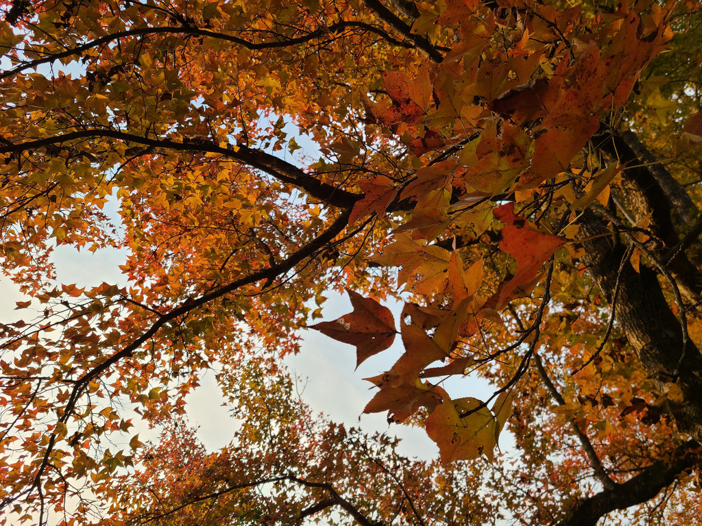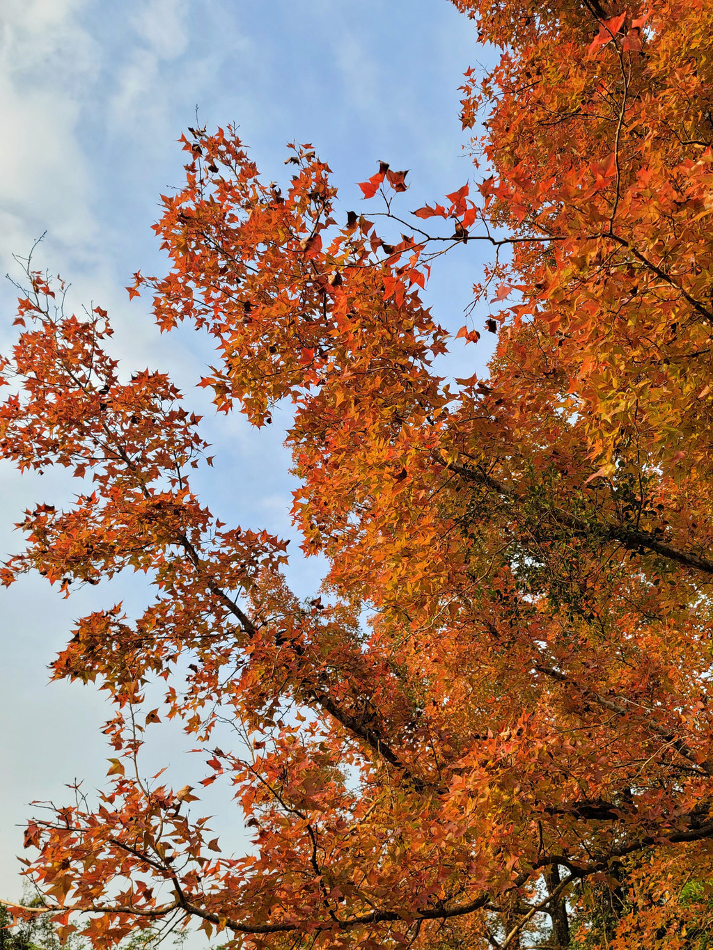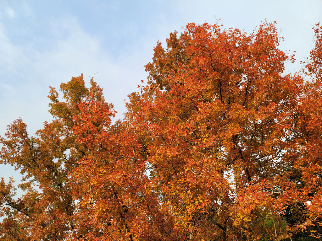 行程的最后,距离乌蛟腾不远的九担租附近,偶遇上一片的红叶树林,虽然转变了颜色的树木数量不多,但是数棵树木的叶子基本都转成了橙红色,在满山青翠之中份外显眼,引得无数游人流连。