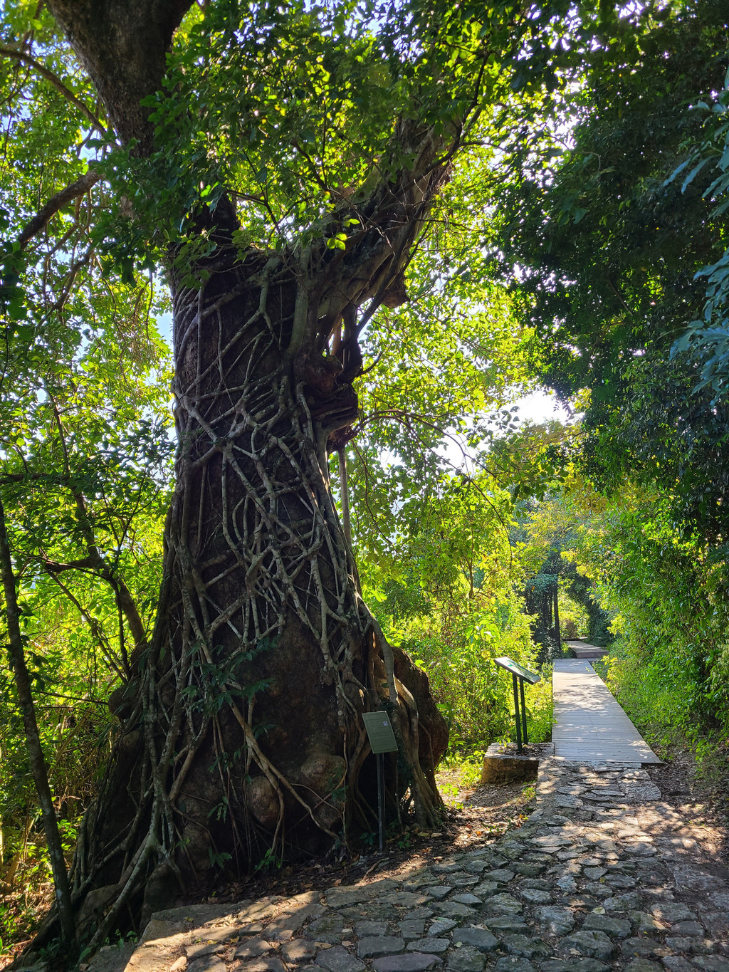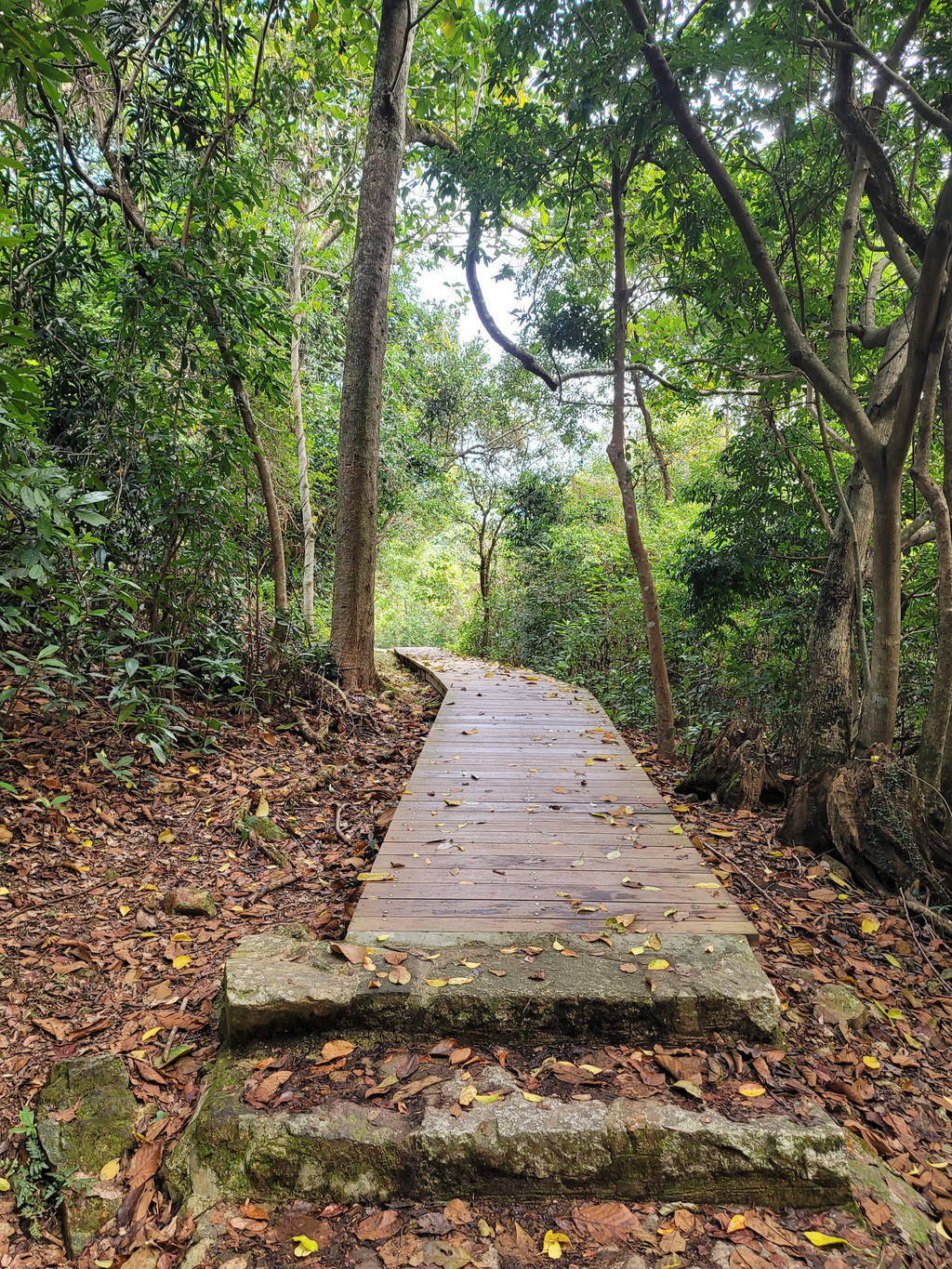 离开仙姑峰往大美督方向下山 ,这段路的梯级相对上山的石阶平坦,不过全程基本都被树木遮挡,比较失色,特别是接上八仙岭自然教育径沿山腰下山,基本没有太多出彩的地方,唯一好处是之前的阳光都被林荫遮盖了,不过个别路段的石头还是有点滑,路上还是需要注意的,最后回到海平面的大美督。在这山峦起伏间行走,基本可以尽览新界东北的景致,付出的体力和汗水,当登高远眺时,一切皆是值得。