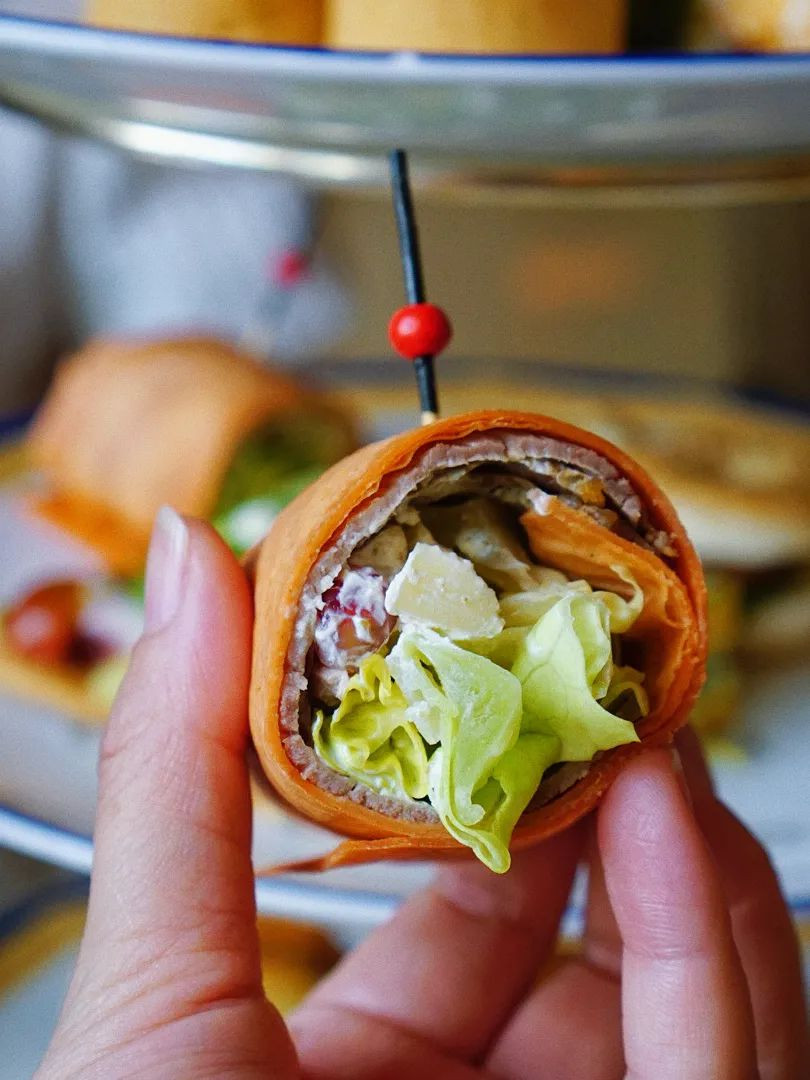 仪式感的真实品味则来自精致的美食了,三层架的点心从咸点精选手指三明治开始,最后以英式烘葡萄干松饼作结束,优雅而惬意。