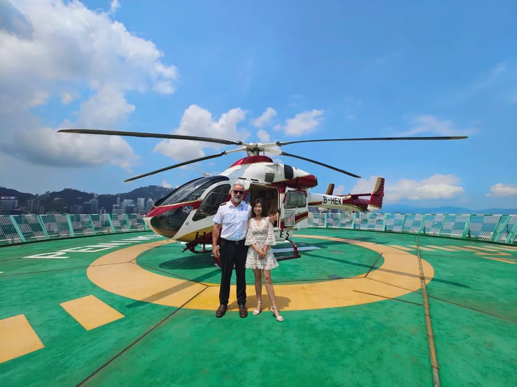 两位花花搭乘双引擎空调麦道MD902探索者直升机,在蓝天碧海间探索香港,飞越新界和九龙繁忙的蜿蜒街道,俯瞰了清水湾的海滩,也终于见到自小就听说的那座狮子山。