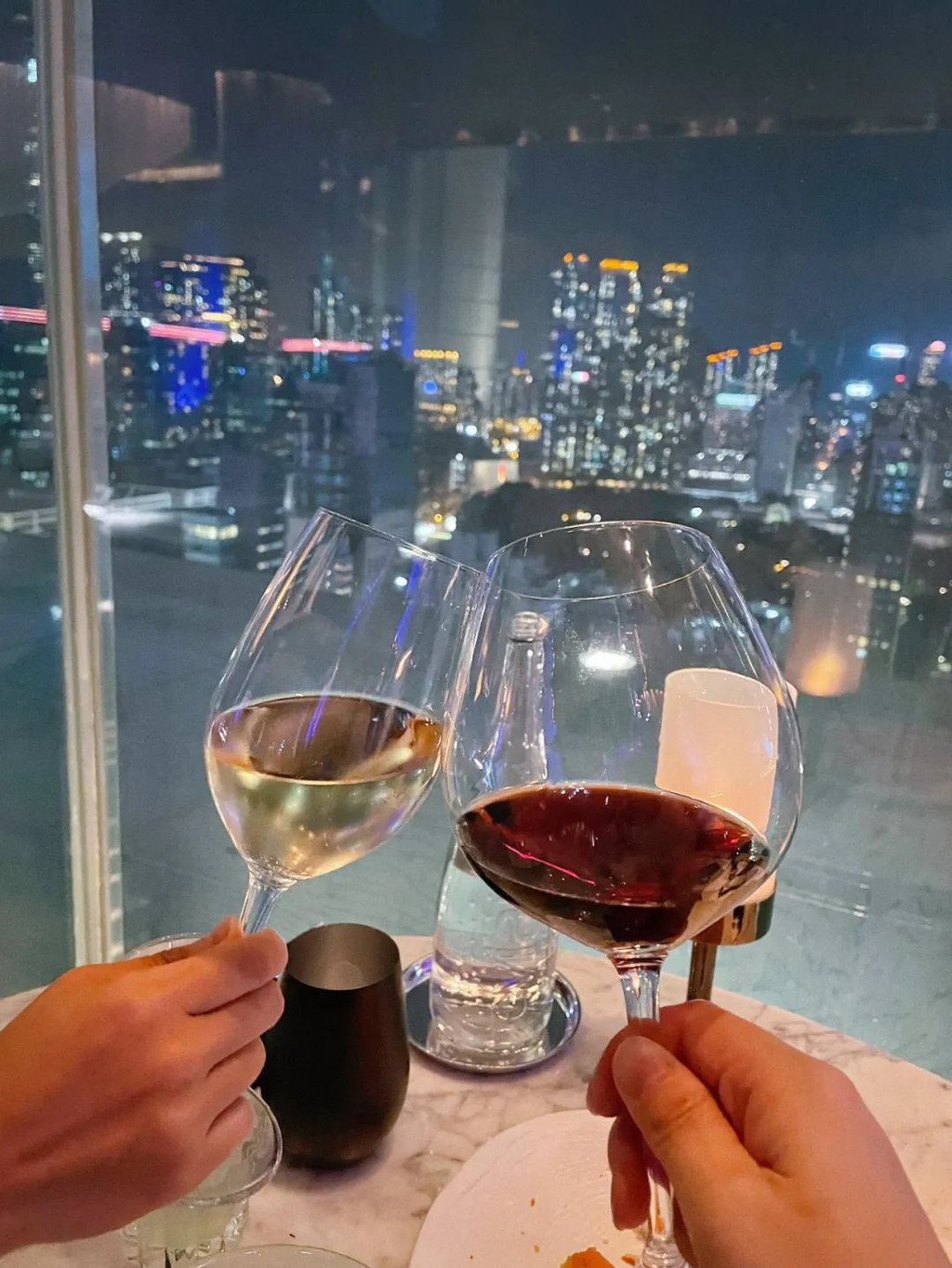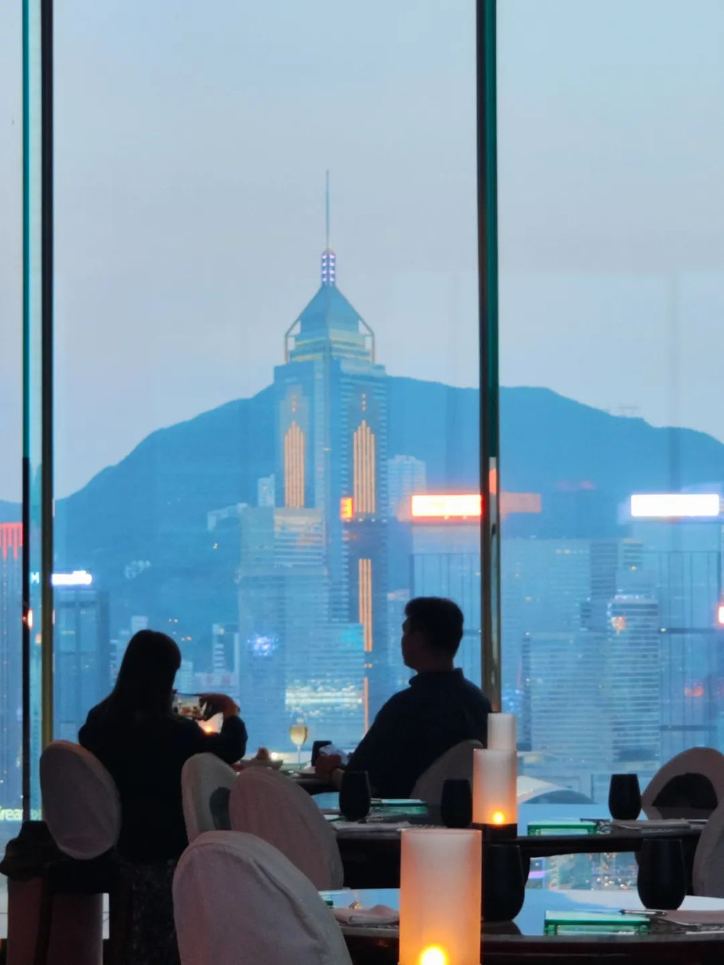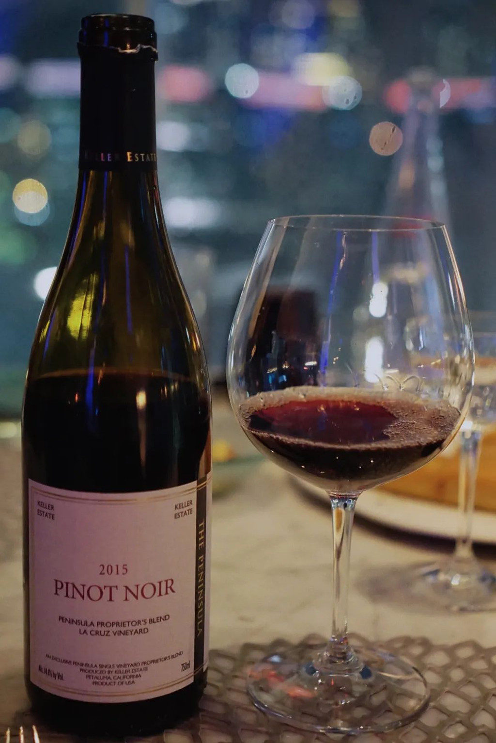 落座后,一向爱试酒的Jessica点了一杯半岛酒店老板自己酒庄出产的黑皮诺,她说半岛酒店老板确实是懂酒的,黑皮诺充满馥郁的果香与花香绵柔悠长,很有记忆度。仲夏夜,一边感受充满惊喜的欧陆先锋菜,一边举着酒杯欣赏360度维港夜景,微醺就很妙。
