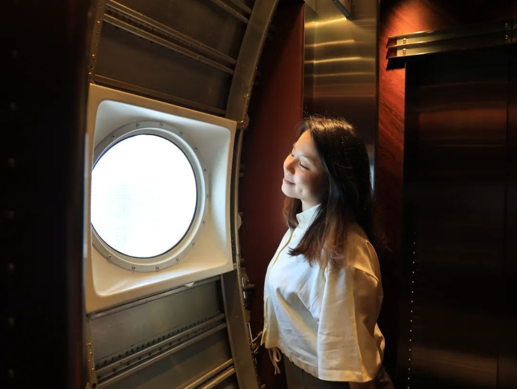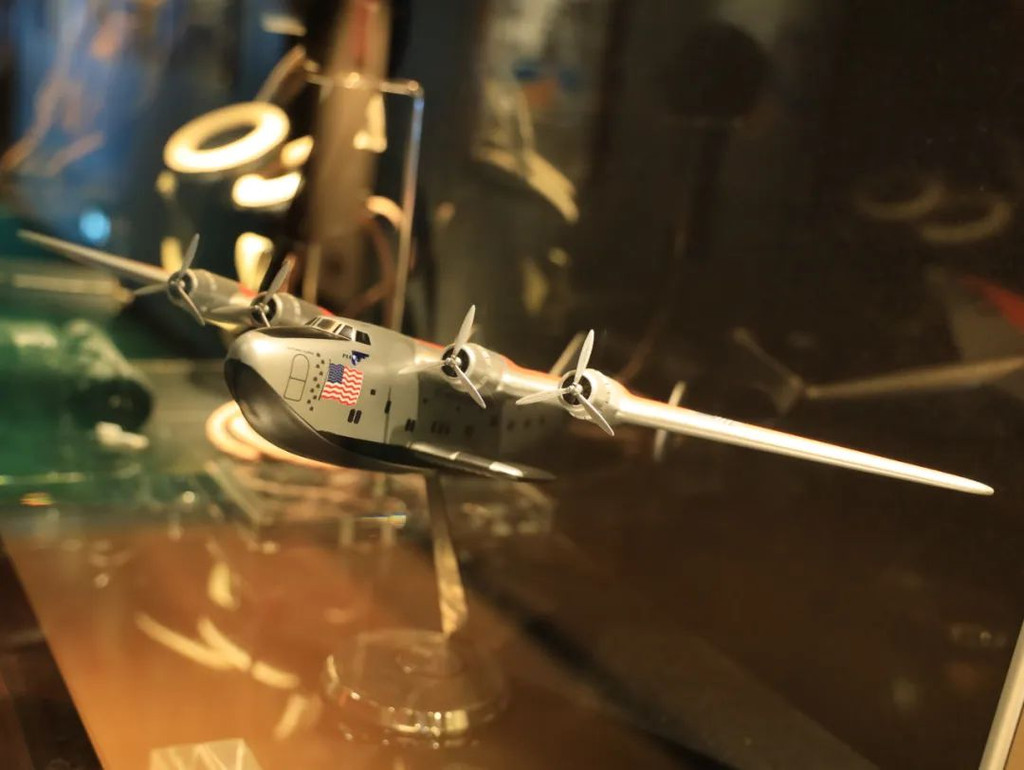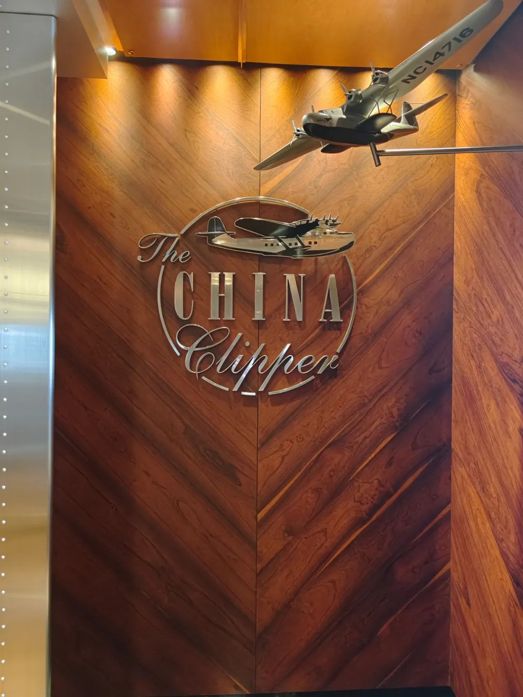 而停机坪下,是犹如航空历史博物馆的China Clipper候机廊,China Clipper源自泛美航空于1935年完成商业首航的水上飞机的名字。整个空间均以China Clipper及航空为灵感,加入飞机螺旋桨、引擎等作设计元素,更有一块隶属于 Douglas DC-4型号飞机的机身面板,面板上内嵌的机窗是很受欢迎的打卡位。