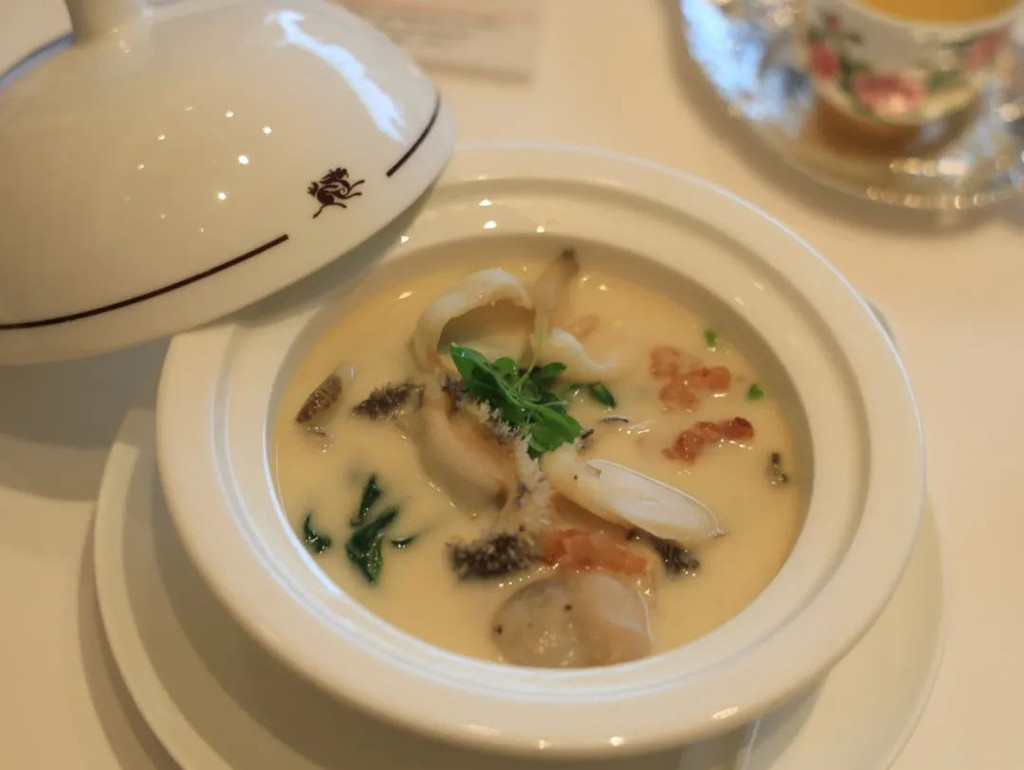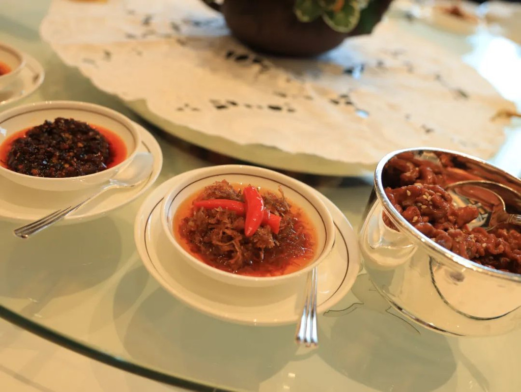 这次没有机会尝到嘉麟楼首创并且早已闻名中外的奶黄月饼,但也尝到了备受赞赏的半岛手工酱,包括XO辣椒酱、四川风味辣椒酱、潮式辣椒酱,各款的个性相当突出,搭配当天的菜品,每一口都有惊喜。