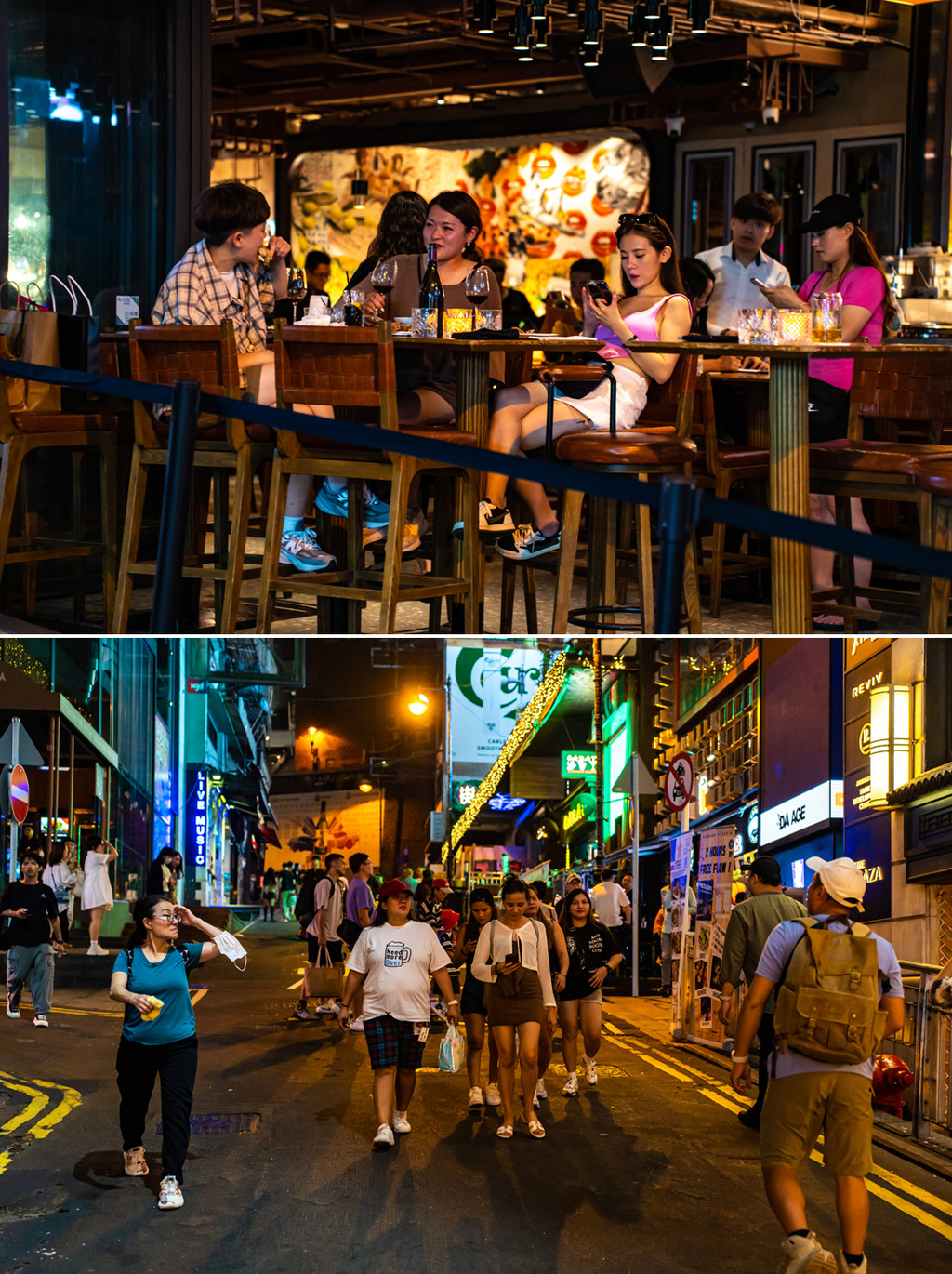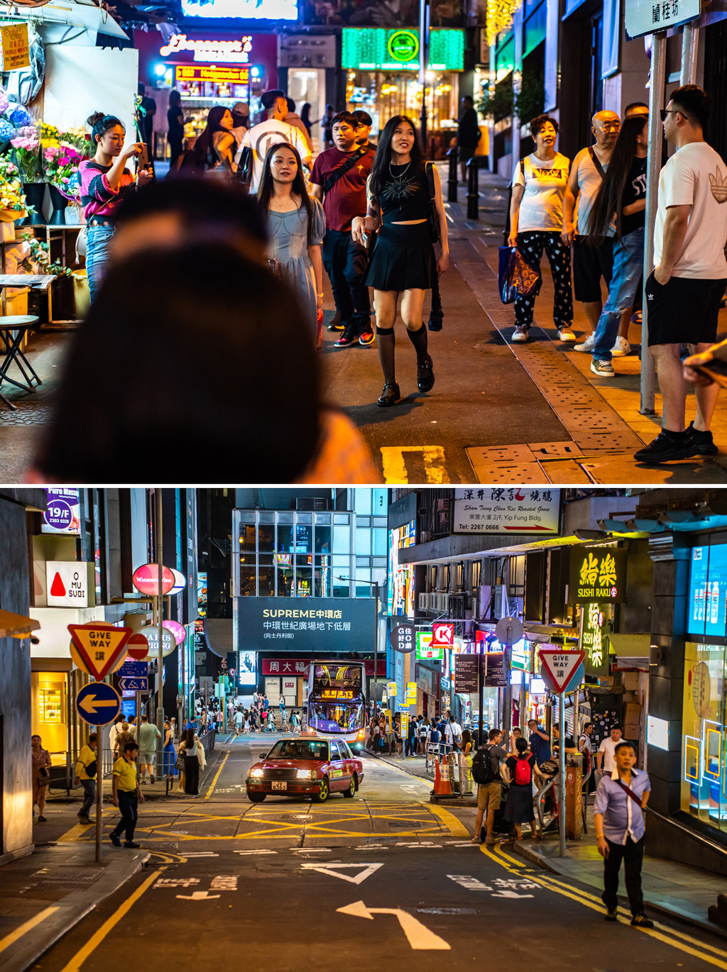 香港确实有拍不够的街景和人文,走着走着天就黑了,造访一下越夜越热闹的泡吧达人聚集地兰桂坊,还不到午夜的这里似乎人气还没达到鼎盛,但是能有多热闹已可窥见一斑。各国的俊男靓女正从四面八方汇聚而来。
