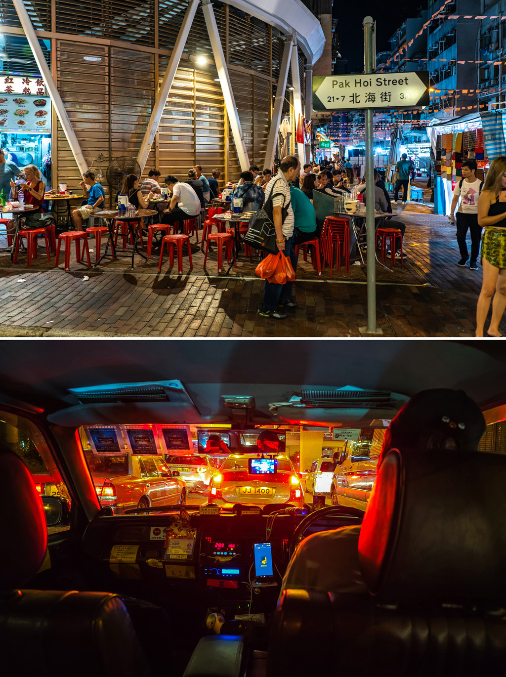 天黑下来,昏黄的灯光里,火红的大巴川流不息,大排档的声量也在逐渐升高,属于香港人的夜生活,也才刚刚开始,而我,招手叫了一台九十年代的红色丰田老皇冠计程车,在划着光轨的都市水泥丛林中穿行,记住风里吹来的专属于这座城市的气息。