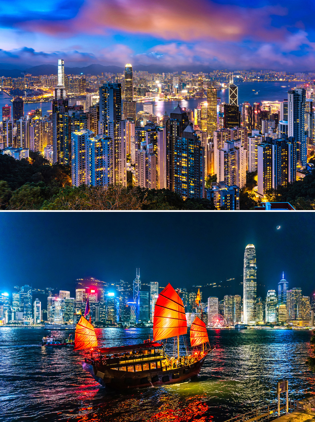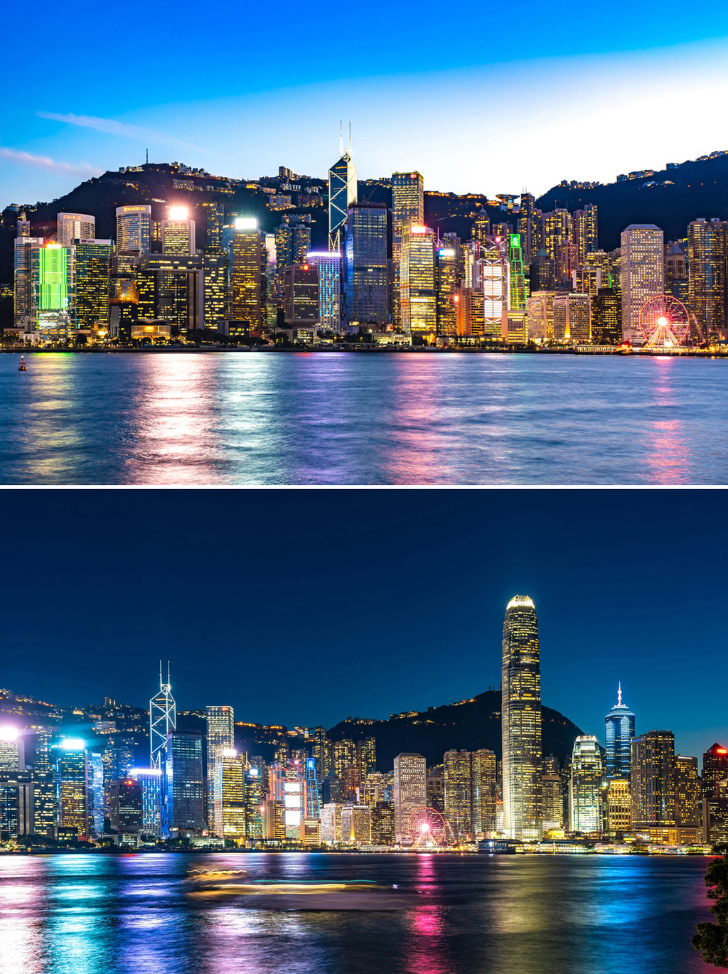 太阳渐渐落下,港湾渐渐亮起,我把相机安置在三脚架上,手机也支起来准备录一段延时摄影,从日落到蓝光到天黑的每一个瞬间都不能放过,因为确实每个时间段的维港夜景都不尽相同,天上的云和光线也在随时变化,直到黑夜完全笼罩,香港的辉煌耀眼展现在了所有人的眼前,身边的游客都不禁发出各国语言的感叹声,能在晴朗的天气拍摄到这样的画面,运气可谓爆棚,太开心了!