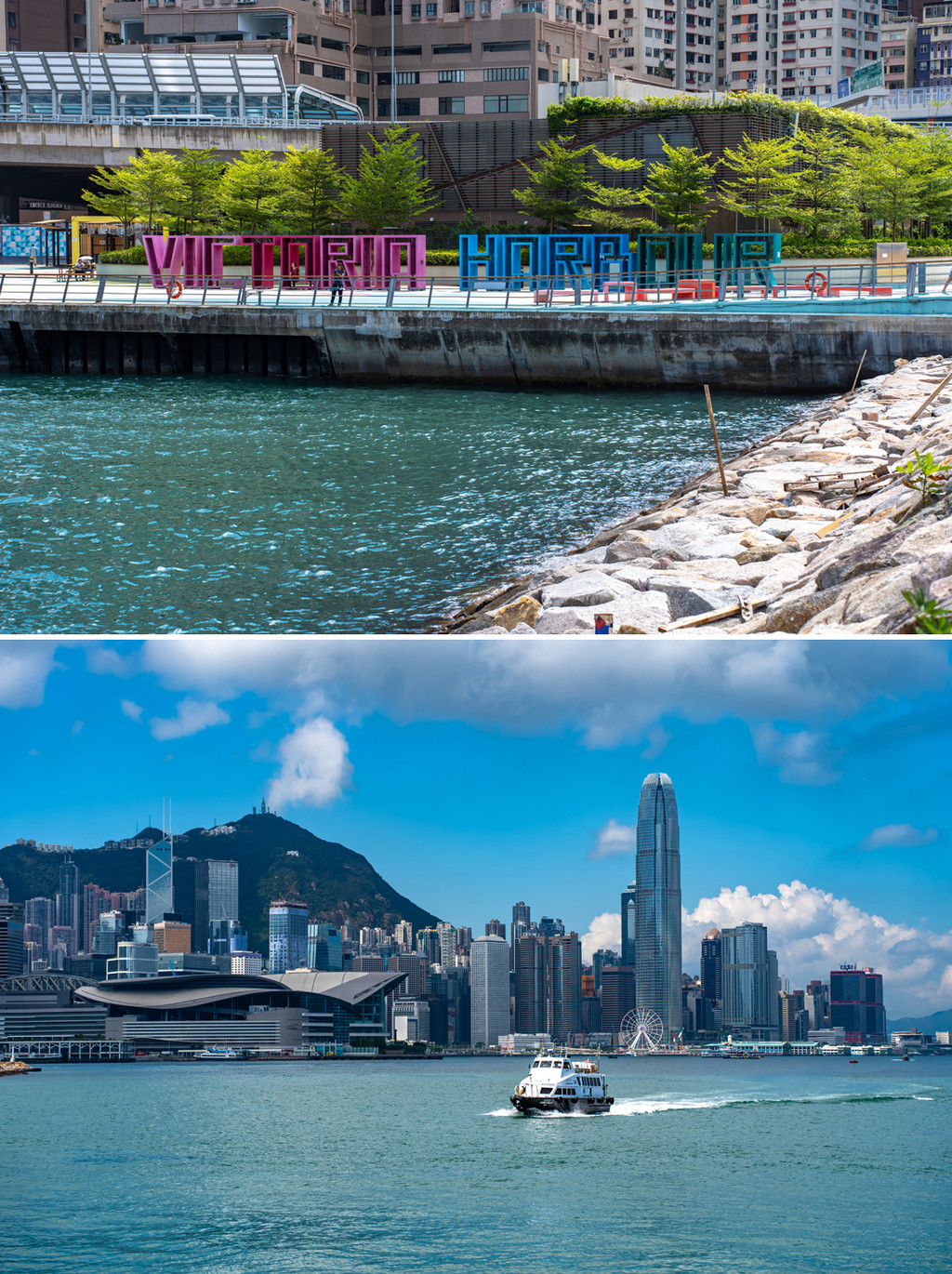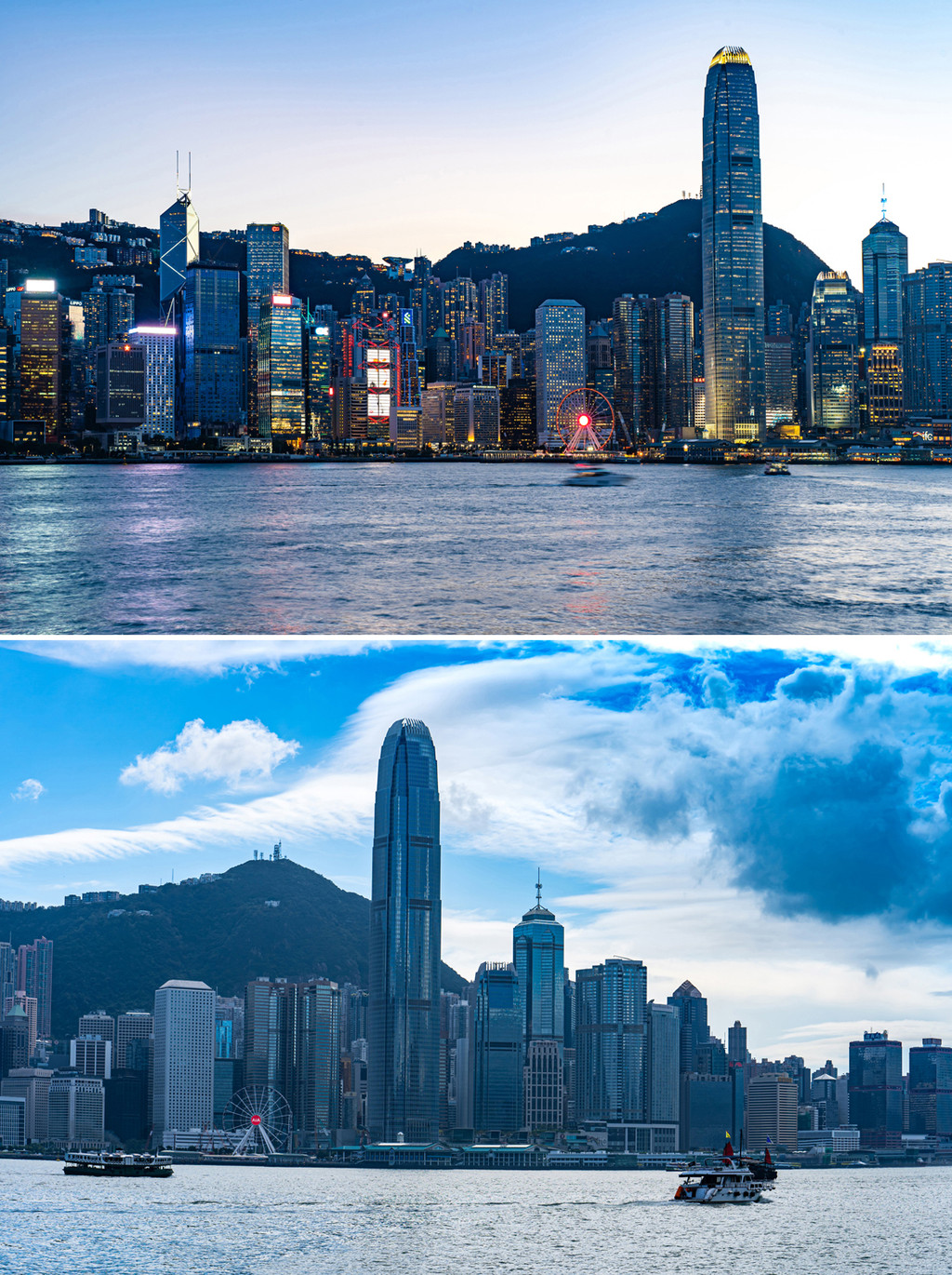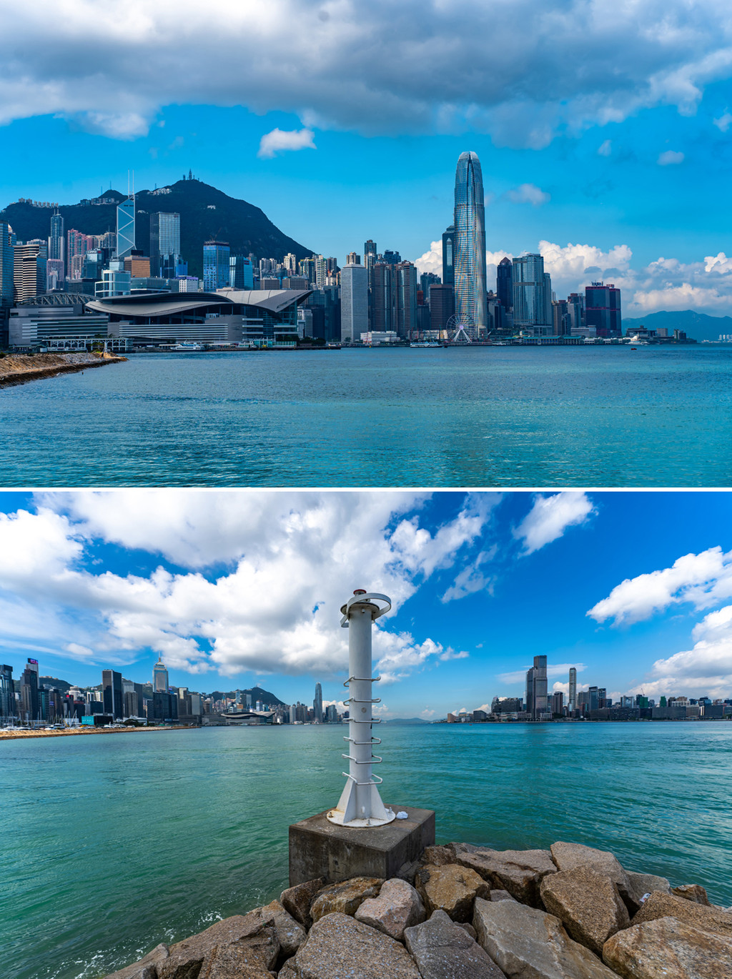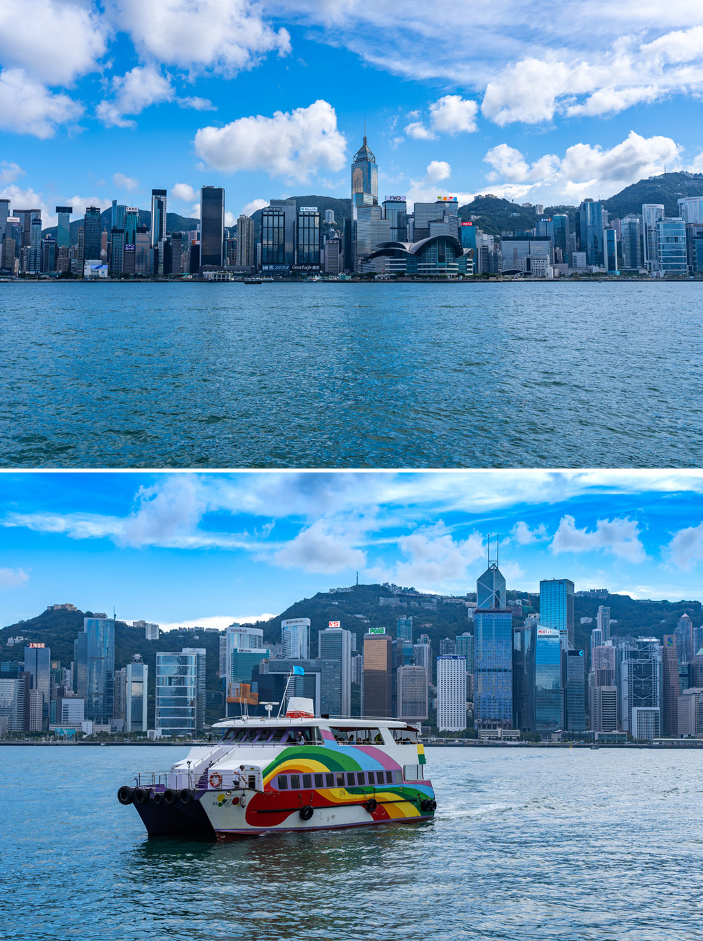 此时初秋,深邃的蓝天和浮动的云朵引领我来到维港东岸,拍下中环和维港此行的第一组照片,碧水蓝天映的整座城市泛着通透的质感,快艇划破水面,激起白浪一线,此刻此景,太美好了。
