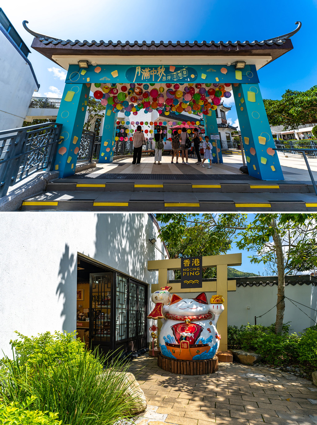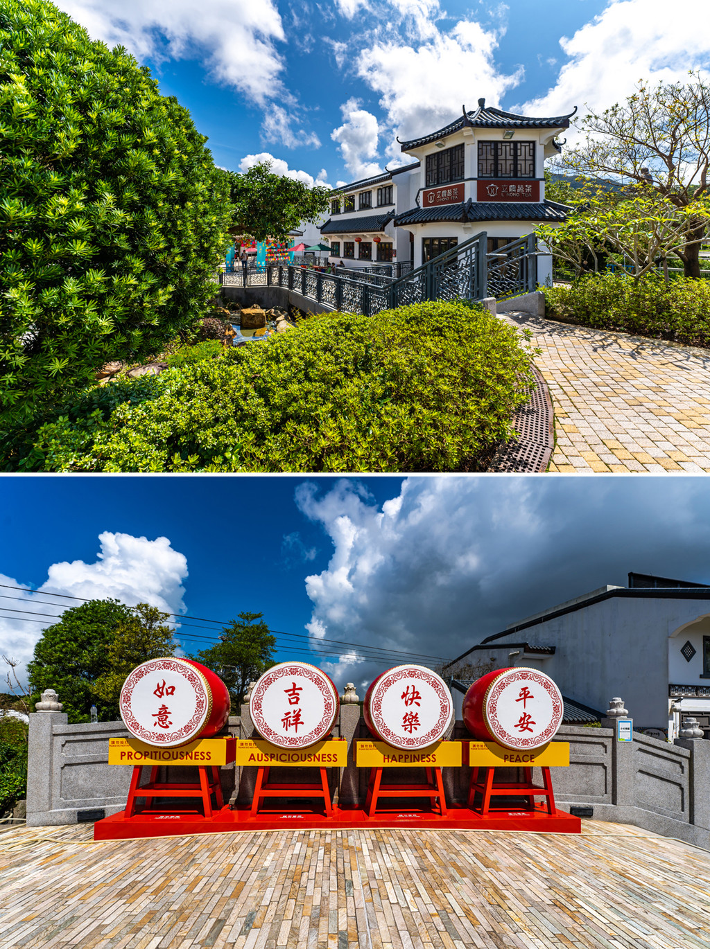 从缆车站出来,就是别致雅趣的昂坪市集,这里建成了仿古样式的街道,搭配经营美食和纪念品文创的特色小店,可以让游人在登山之后小坐休憩。