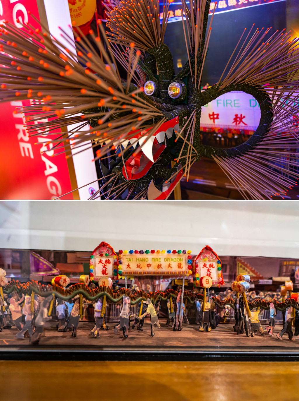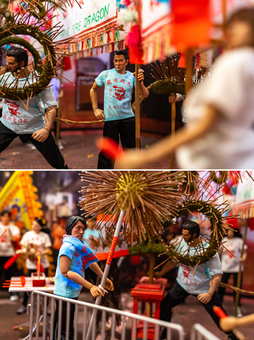 边走边拍,我还寻到了香港非遗传承的大坑火龙文化馆。每逢中秋佳节,大坑居民会将插满线香的巨龙点燃,游街串巷,驱害镇邪,可是远近文明的节庆大事件,火龙文化馆有一组小型群像雕塑,把香港的大明星们都列入了舞火龙的队伍,我就拍到了我的偶像周星驰,和大家都爱的刘德华,别说,捏的真是栩栩如生。