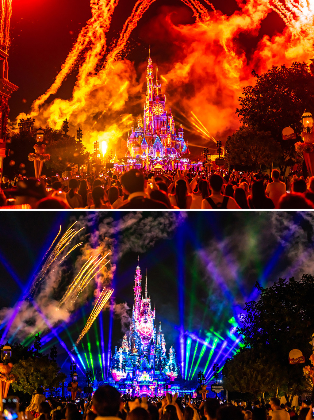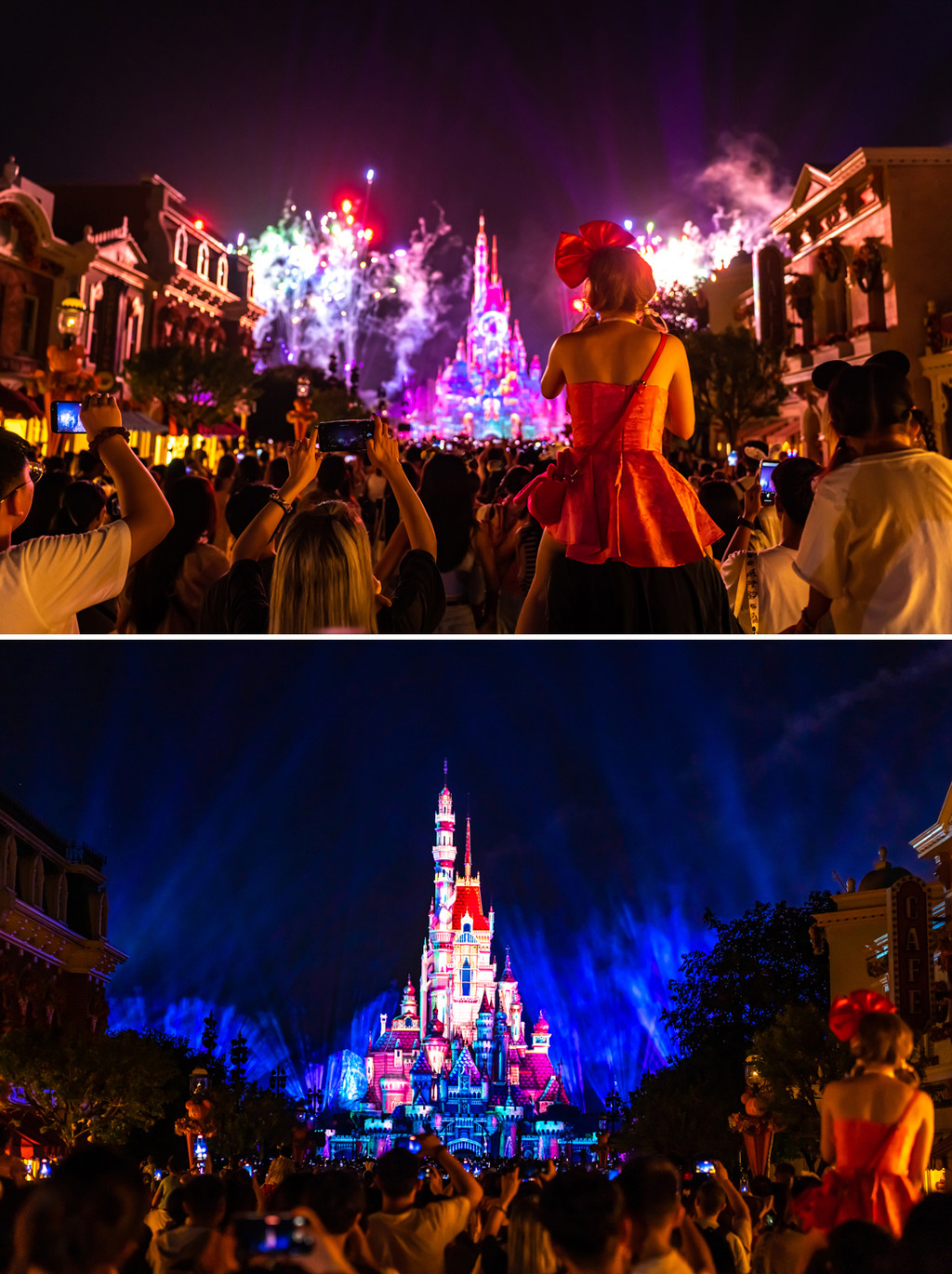 果然,迪士尼不愧是伟大的造梦场,晚上八点,盛大的城堡焰火如期而至,它将几乎所有迪士尼童话故事投影在城堡之上,搭配专属的背景音乐和焰火,或悠扬舒缓,或亢奋激烈,或动感轻快,每一幕都散发绚烂的光芒,万众期待着每一束烟花的升空绽放,心情也随之带入,沉迷其中。
