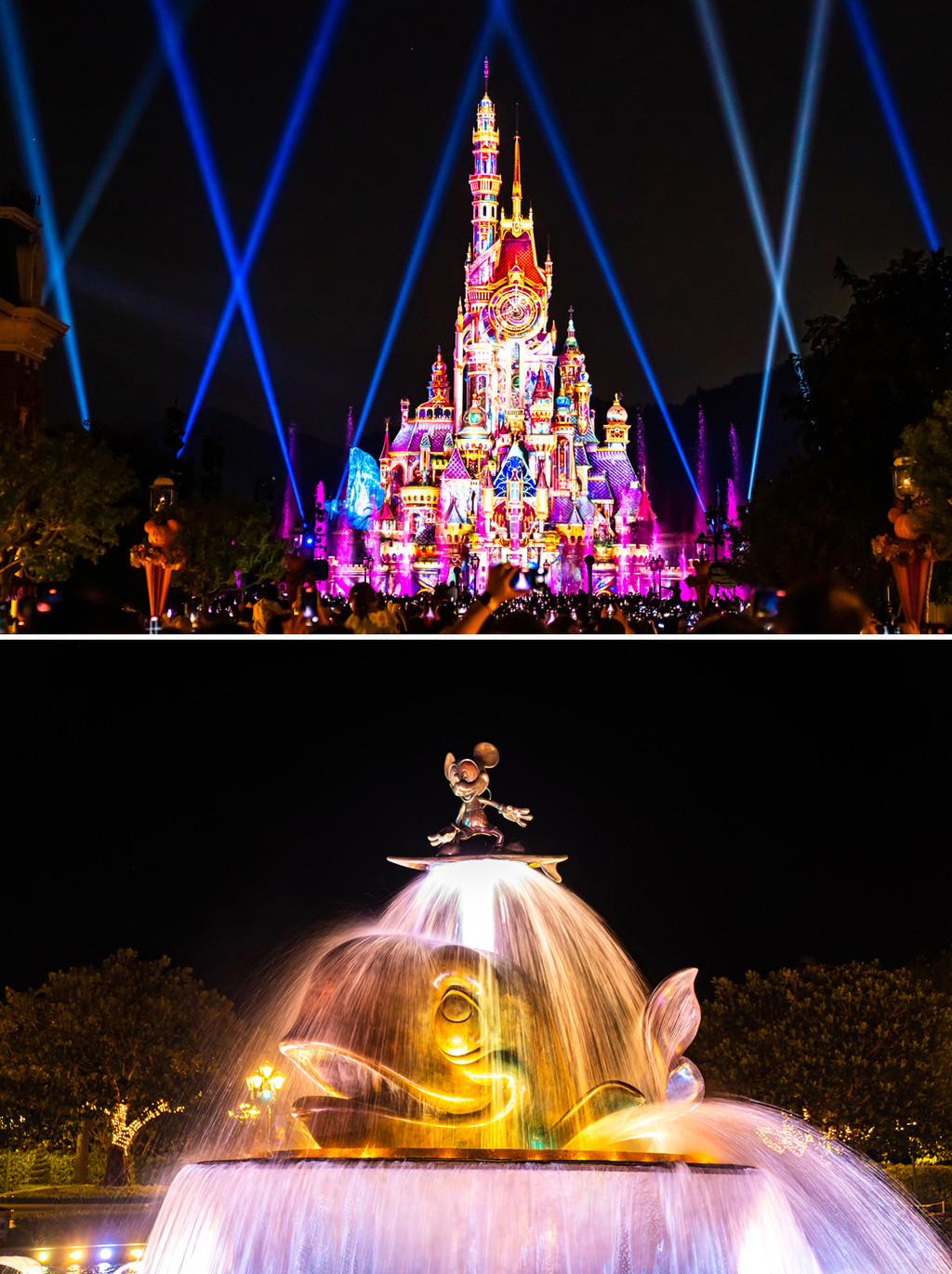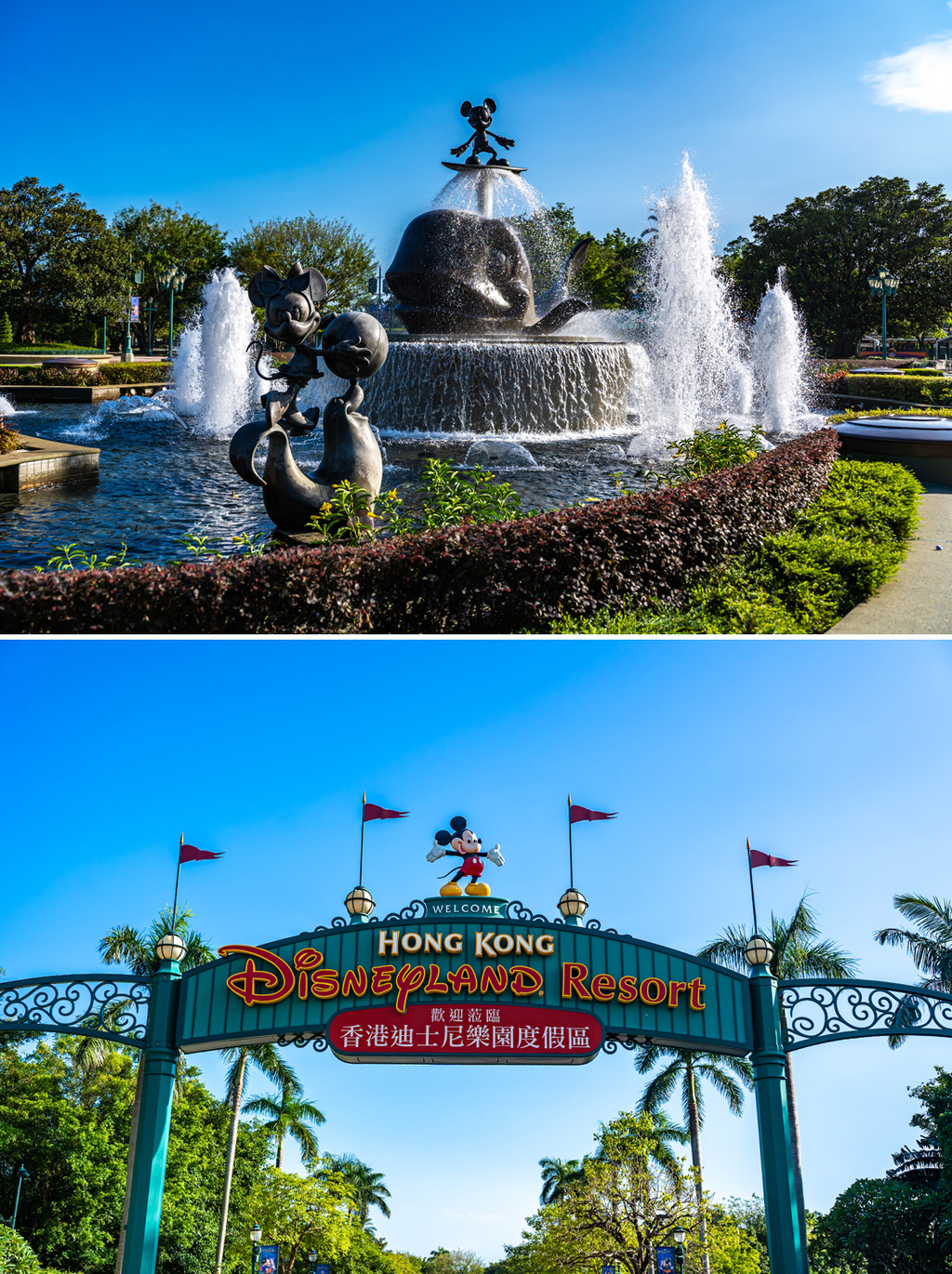 出站远远就看到了醒目的香港迪士尼乐园拱门和似乎永远不停喷涌的米老鼠喷泉。