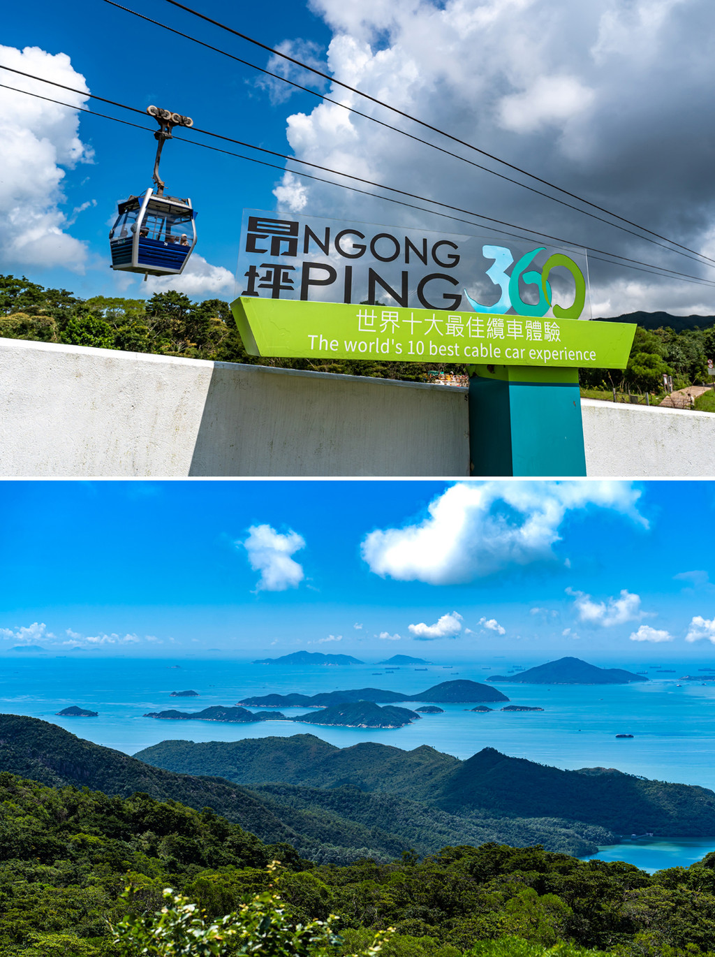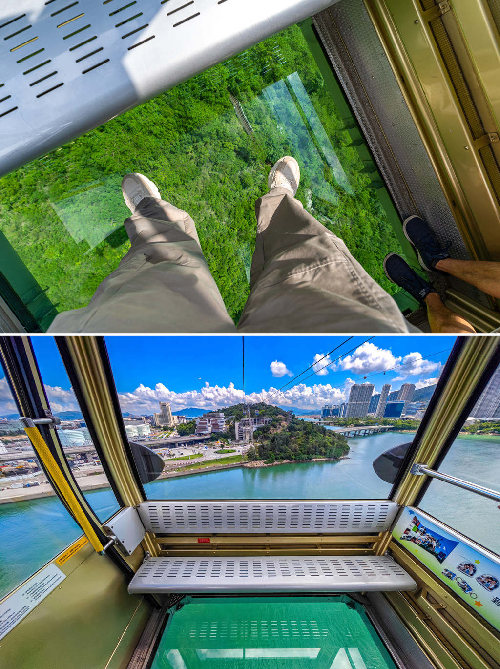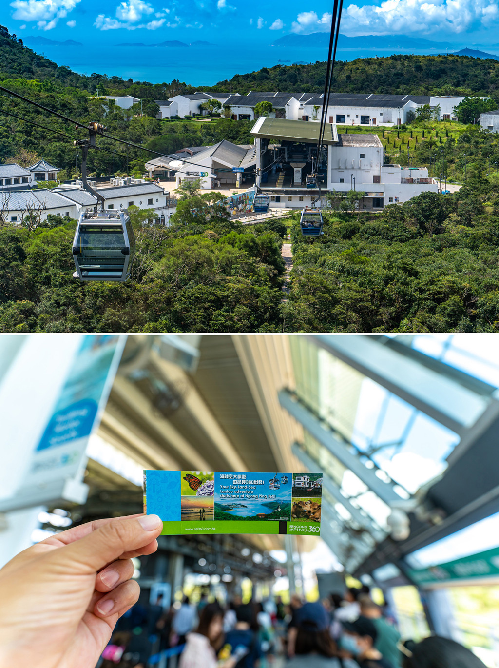 选择昂坪360缆车,喜欢刺激的一定要选全透明的水晶轿厢,票价略贵于普通车厢,水晶车厢的底部也是全透明玻璃,缆车行进过程中,脚下的大海山野溪流景色不断变换,有趣极了。
