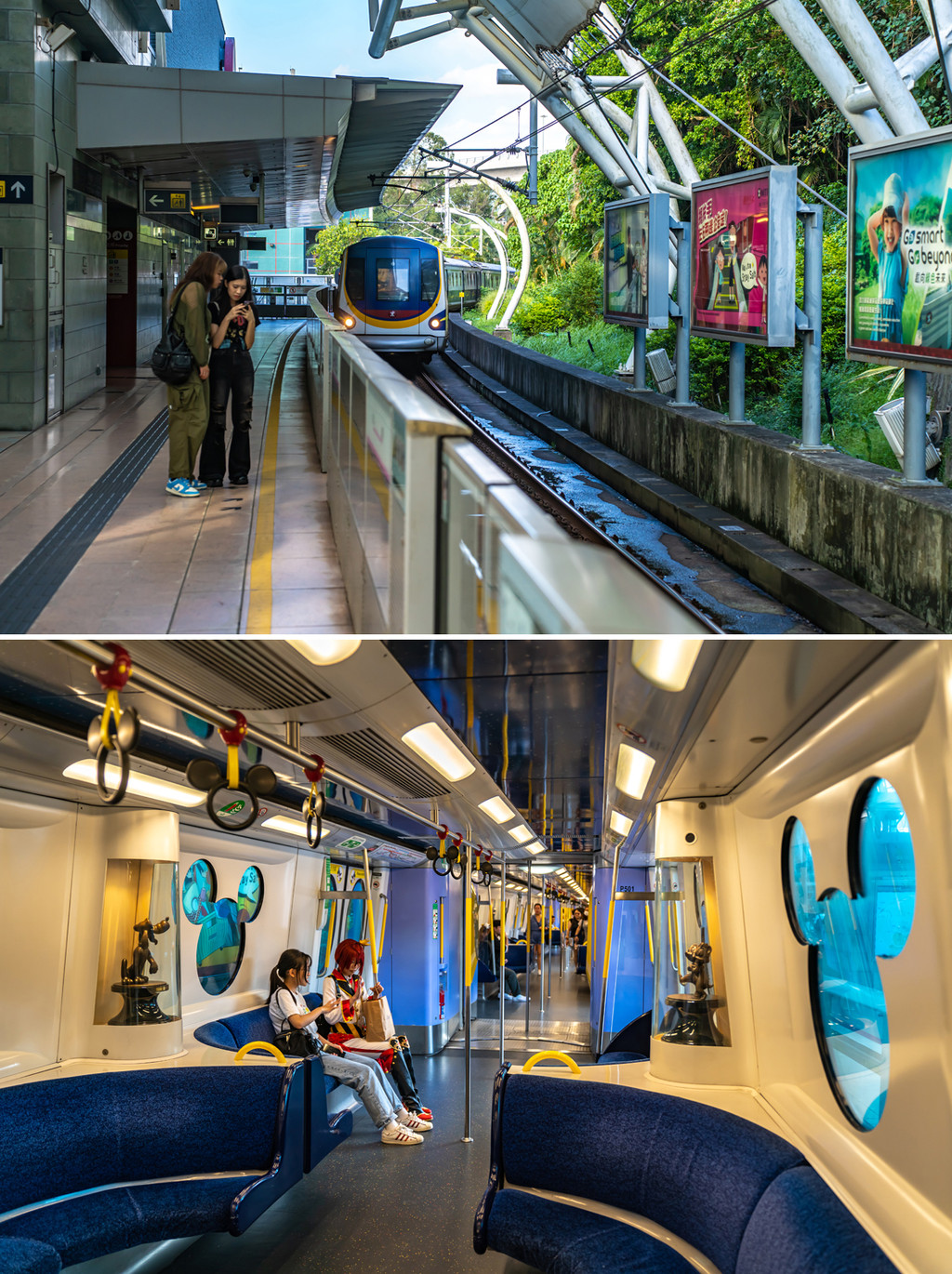 地铁换乘香港迪士尼专线,只要五六分钟就抵达度假区站啦!