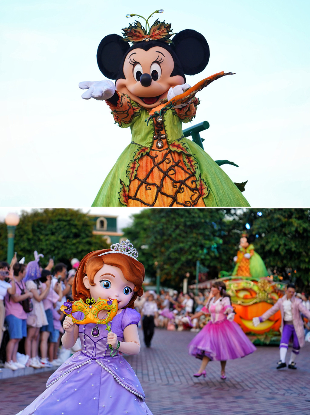 日落前遇到万圣节特别版米奇和他的朋友们大巡游,换上节日盛装的米奇和它的朋友们也太可爱了吧,它们挥舞着双手,跳着欢快的舞步,欢迎来自世界各地的朋友们光临。