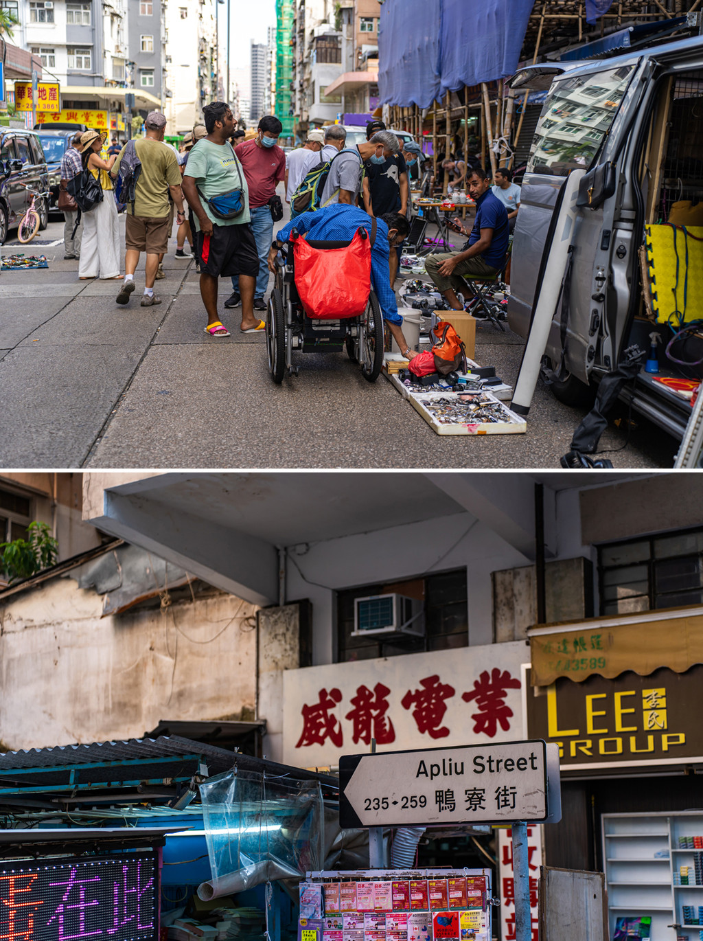 早茶完毕我们乘地铁在尖沙咀附近的街区边走边拍,听说鸭寮街非常热闹,有跳蚤市场和电器街很有特色,就来拍一下。