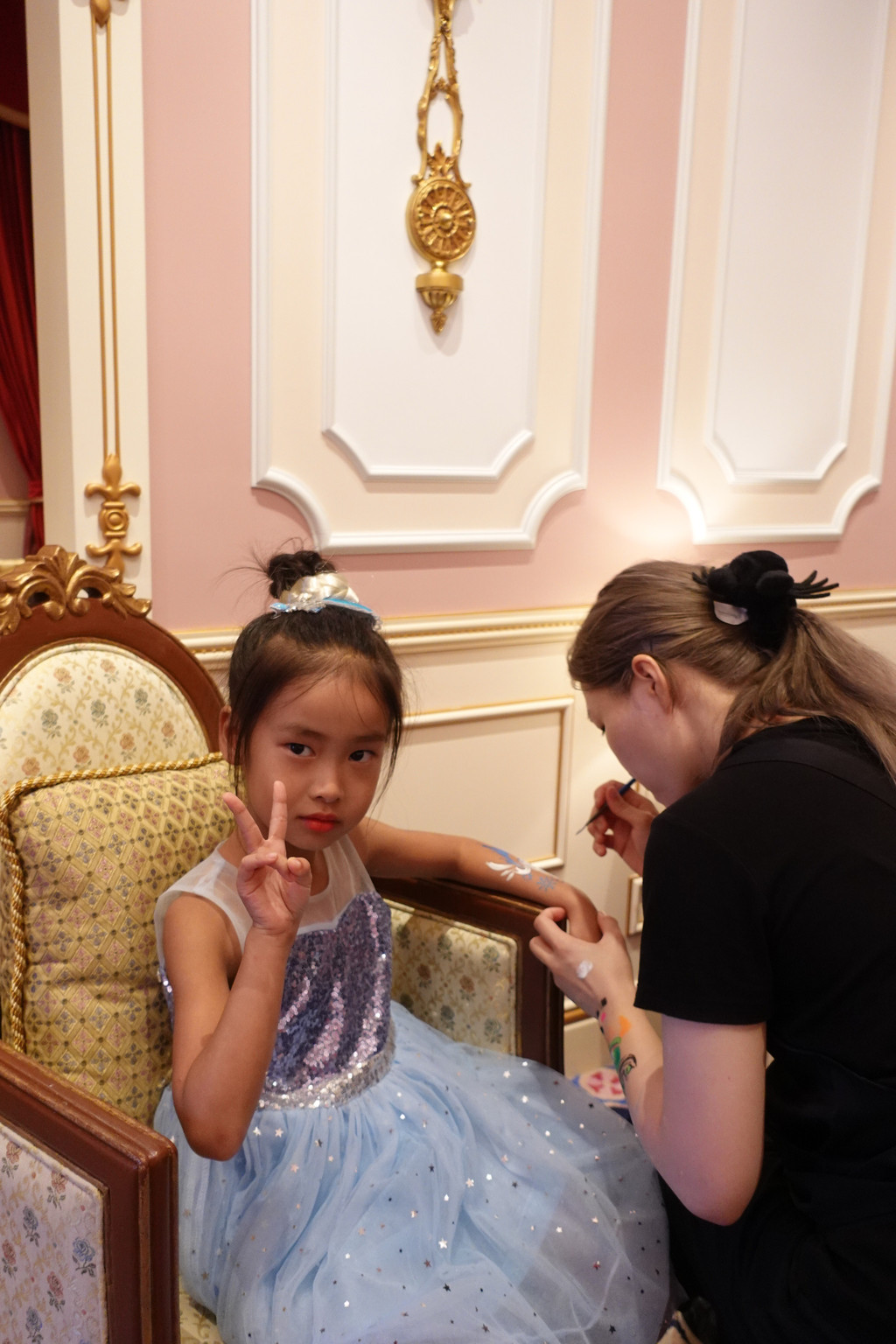 下面视频中展示了画纹身的过程,迪士尼朋友大街巡游,最后来到晚上8:30焰火表演的现场。