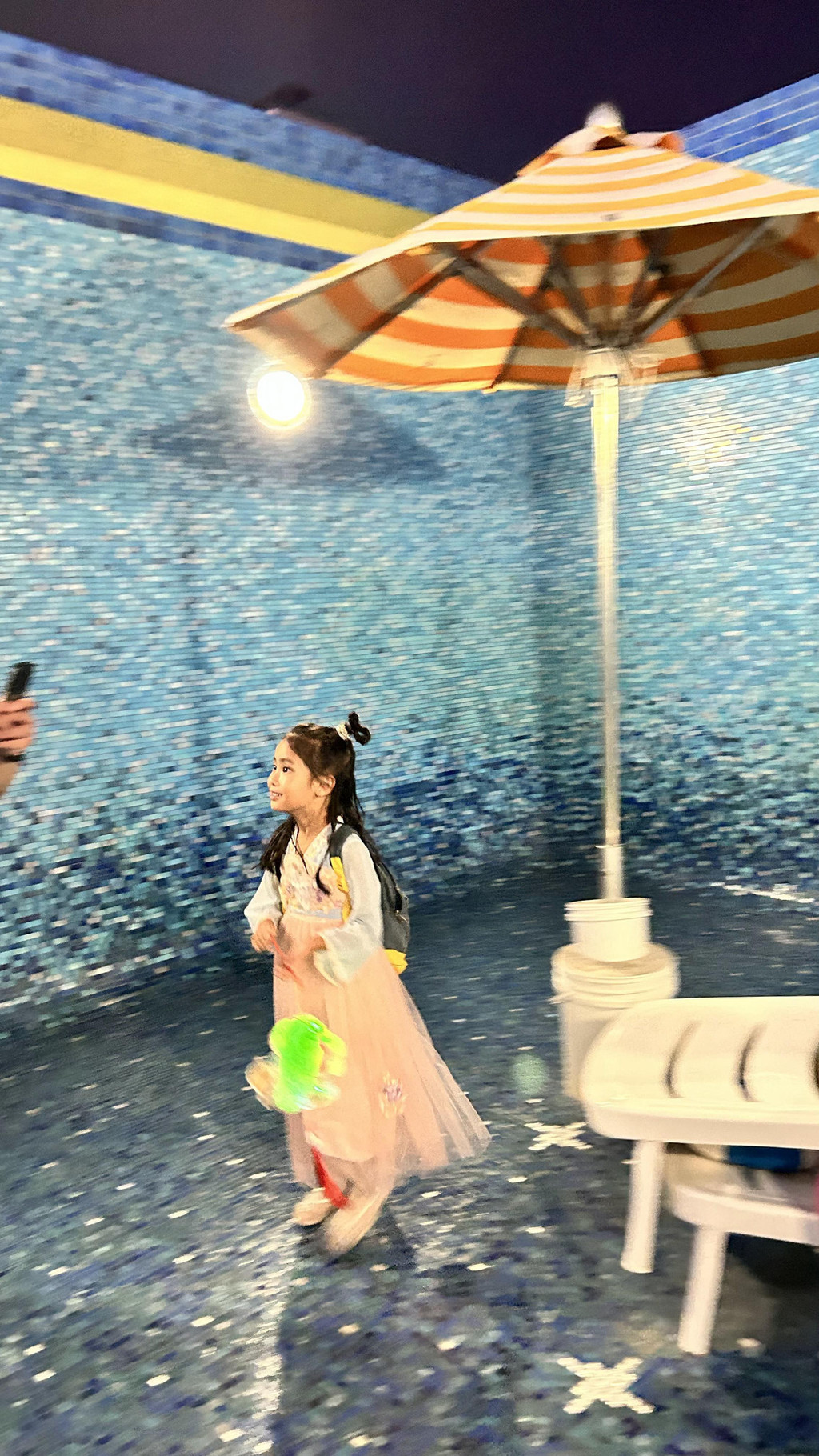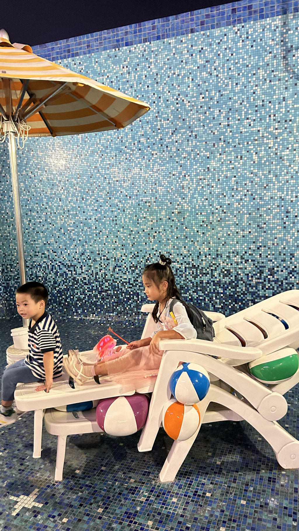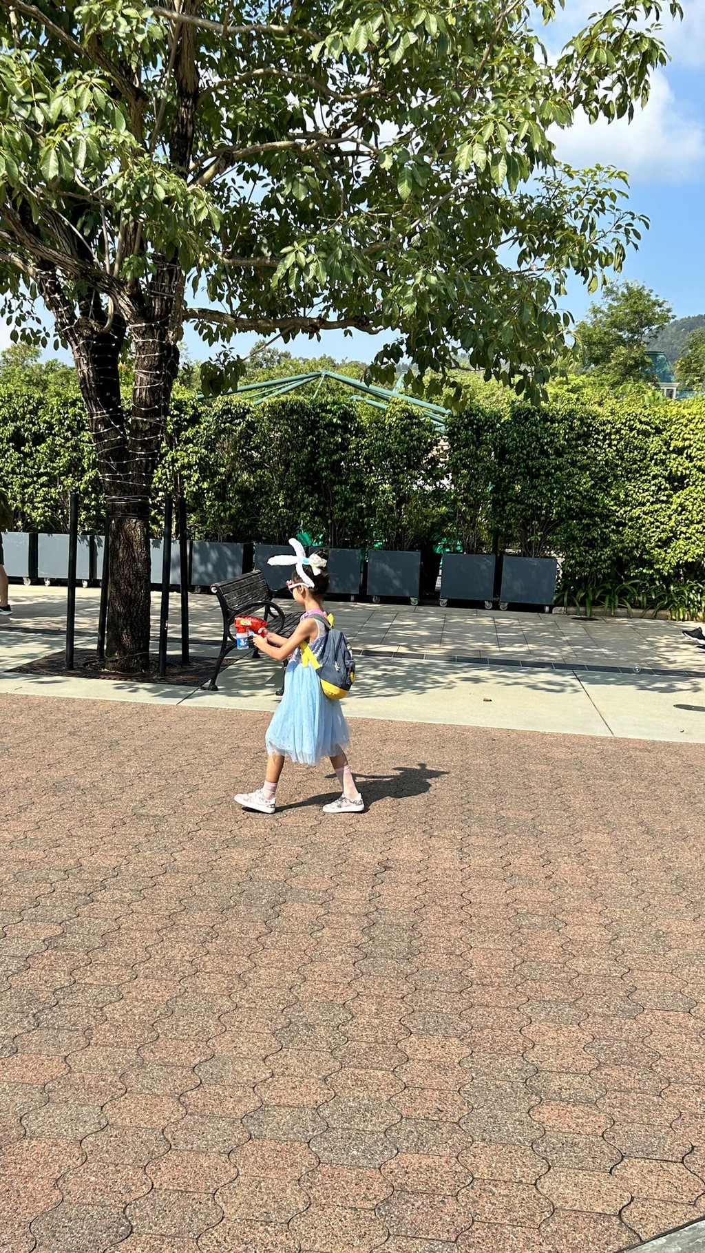 乘坐缆车回到东涌,在地铁站门口(东荟城),地上喷泉让孩子们玩的不亦乐乎,这个点是今天最开心的部分。可是晚上回去宝宝的咳嗽也更厉害了,我拿了备用的药给她服用。
