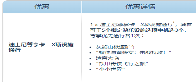 3. 一定要买一个迪士尼尊享卡:3个设施不用排队,走快速通道。(这个票不能退,不能修改日期)