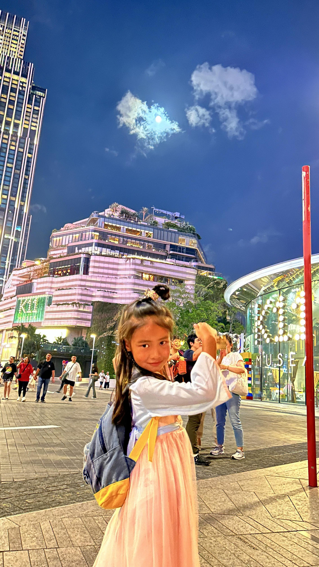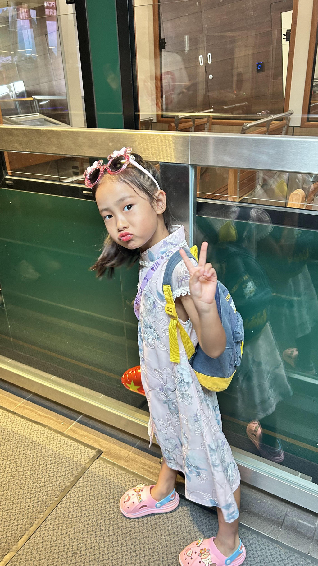 因为今天是中秋节,又要来故宫博物馆,在高铁上就给宝宝换装汉服和造型。
