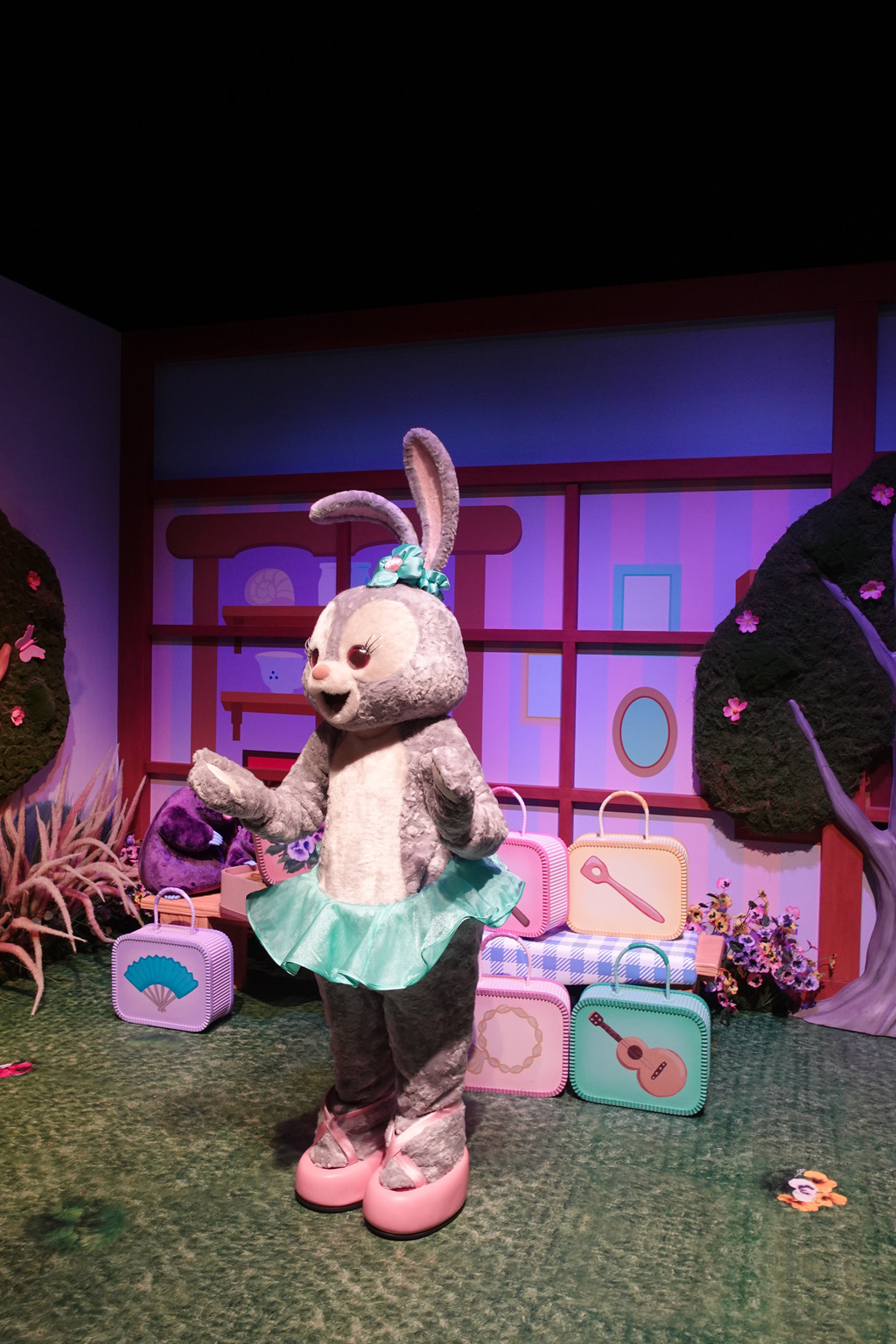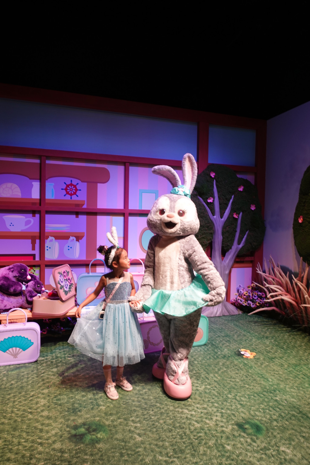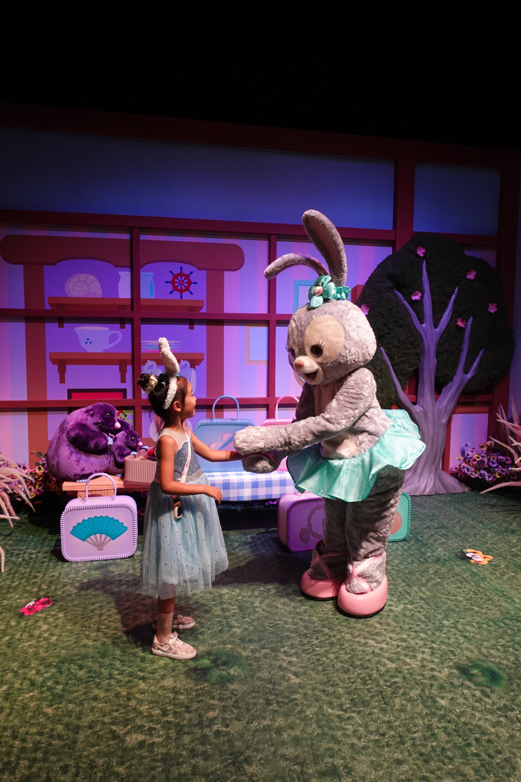 第一站,放弃在门口排队和米奇拍照,直奔达菲好友见面,离门口有一段距离,不是特别好找,最好问一下身边的工作人员。这次要见到Stellalou 星黛露。排了差不多15分钟就见到Stellalou,结束出来的时候,后面的队伍已经排的很长了。(每日见面都会有2个不同迪士尼好友的选择,今天自然是星黛露这边排队人数最多,另外一个好友是一个青蛙,恕我实在不知道这个青蛙在哪个动画片里出现过。)