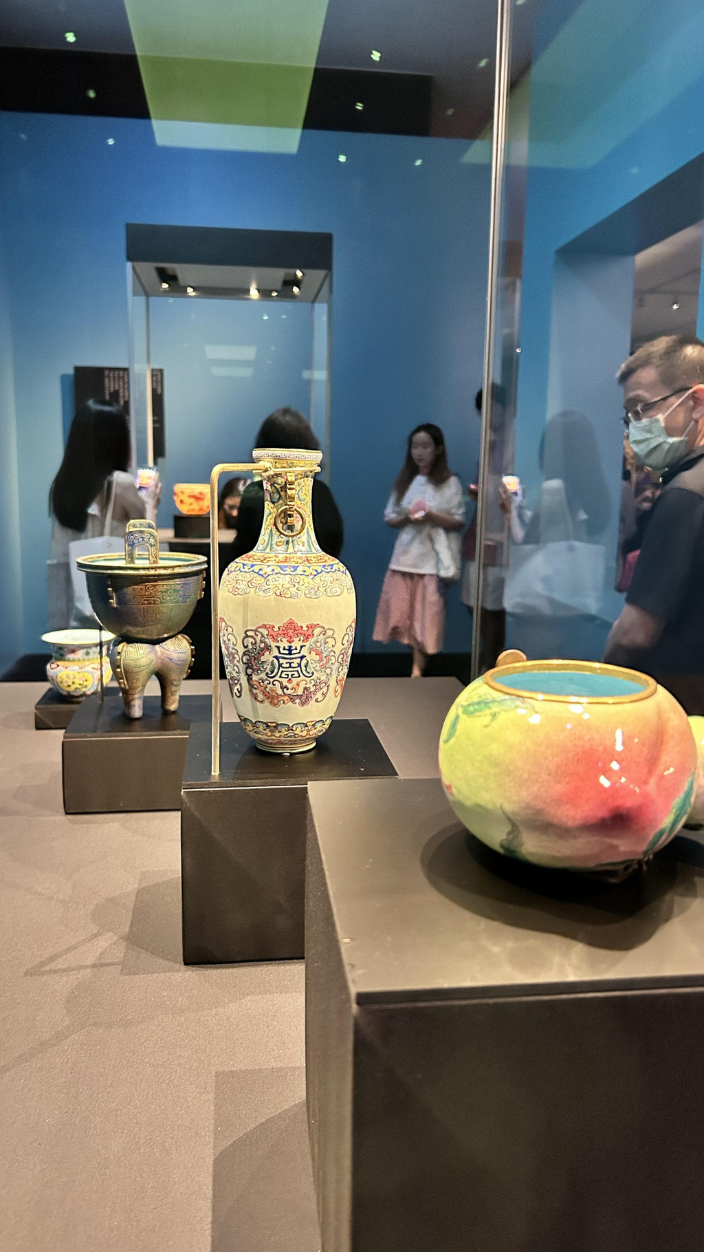 终于赶在下午4点前抵达了位于西九文化区的香港故宫文化博物馆。这里有来自北京故宫博物院的914件珍贵文物,香港故宫文化博物馆占地约1.3万平方米,总建筑面积约3万平方米,楼高7层,设有9个展厅,展厅总面积约7800平方米。博物馆建筑以紫禁城建筑的主色调作为基调,每个展厅的入口则采用了紫禁城城墙的朱红色作点缀。