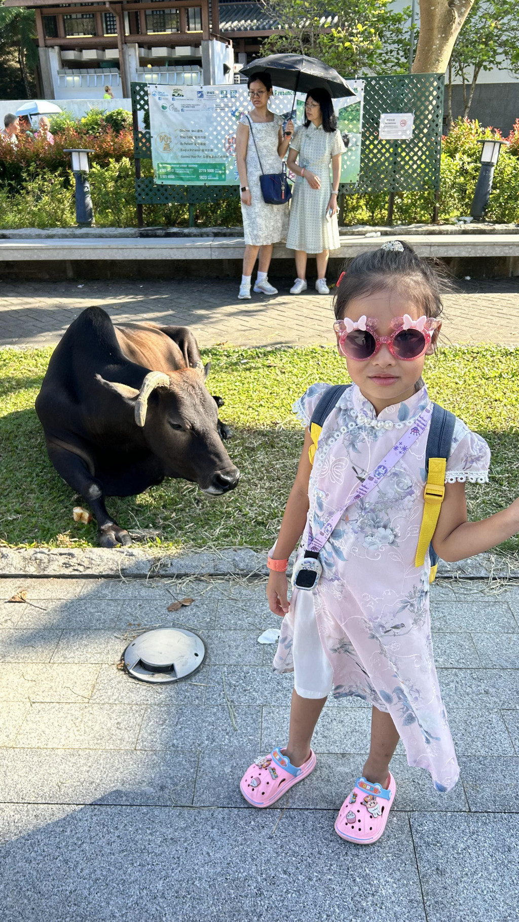 去小小世界的路上,太热了。一直用湿水面巾给她敷在头上,生怕她中暑。