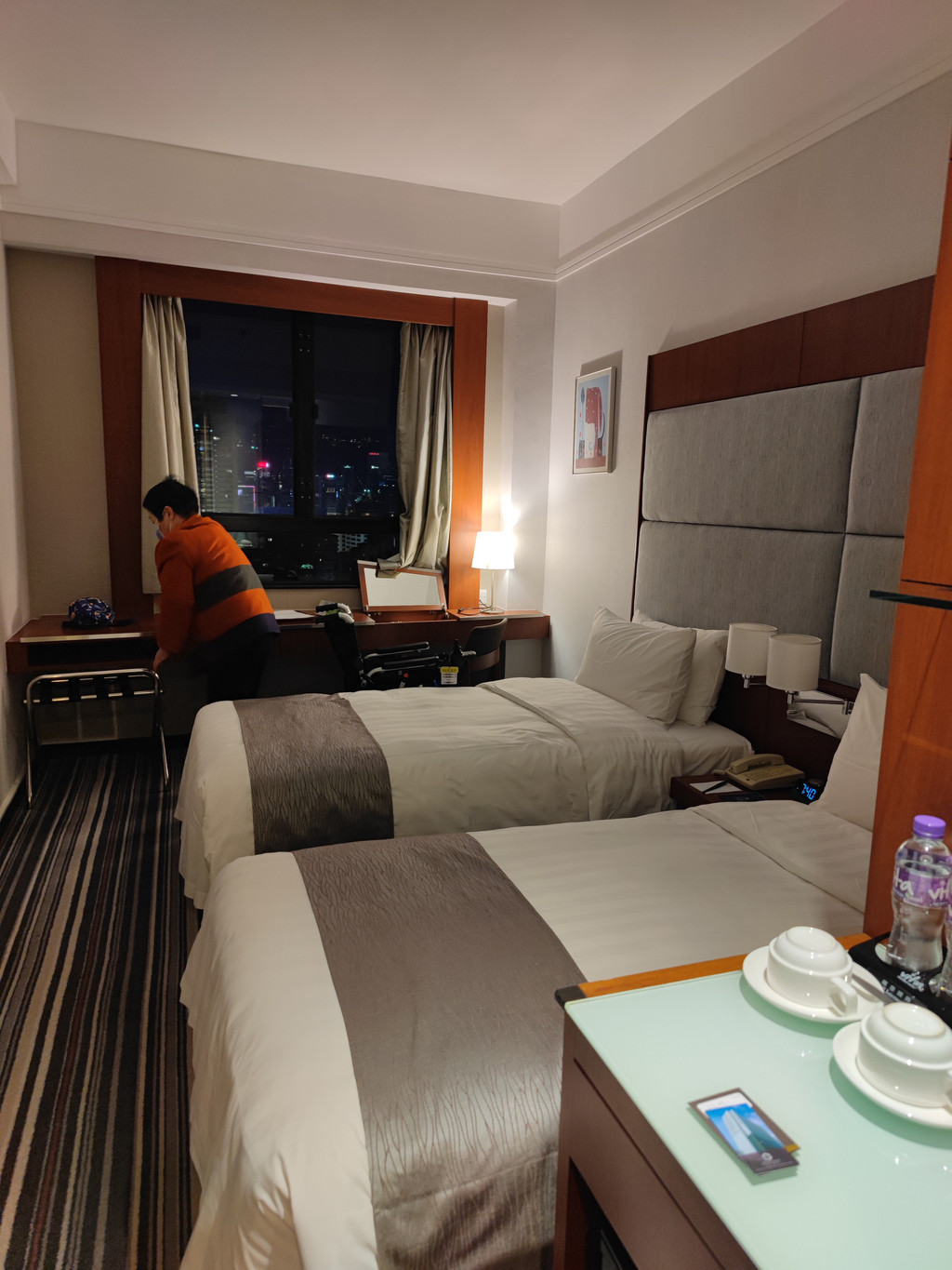 出发酒店,导航起来,出了高铁站门口没有人行横道这个事真的纠结了下,也饶了一小圈。从西九龙火车站出来右转再左转就到我们携程预订的酒店了,这个酒店就是5年前退订的酒店,也是人家给退订了,感激万分,这次一定住这里,一千(淡季更便宜)每晚含双早的酒店在香港,还离高铁站如此近,强烈推荐,办理入住也很丝滑,工作人员也很友善,门口就有便利店和快餐店,还有个粉店,想起麦兜的鱼丸舂面。