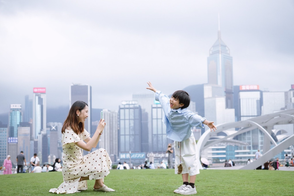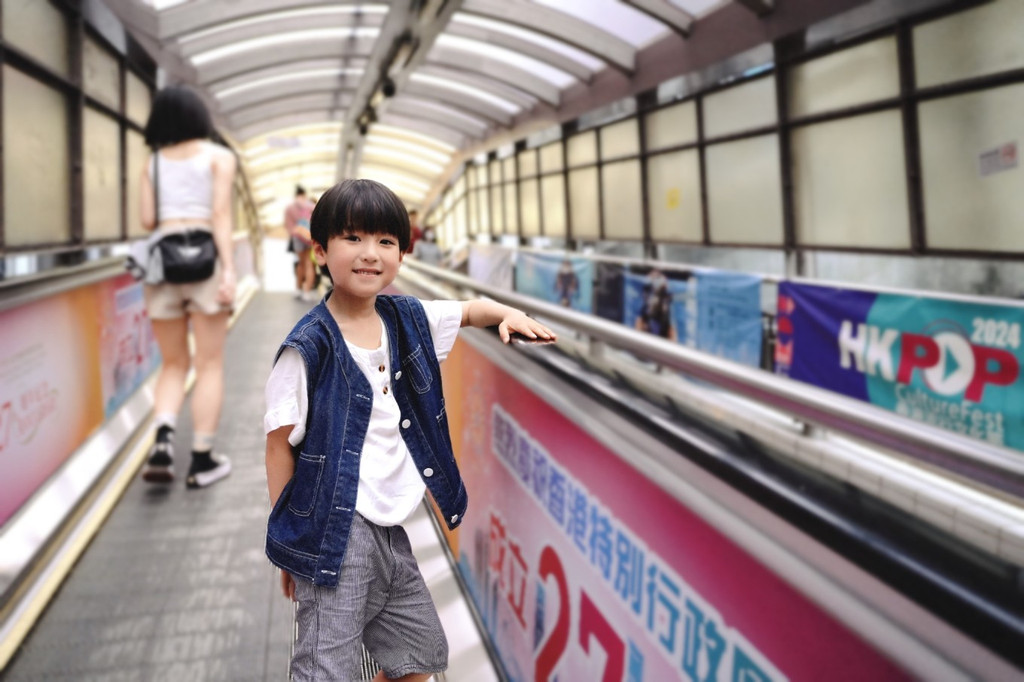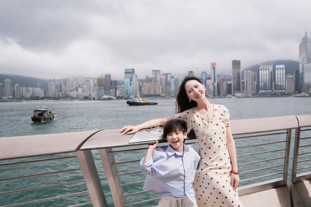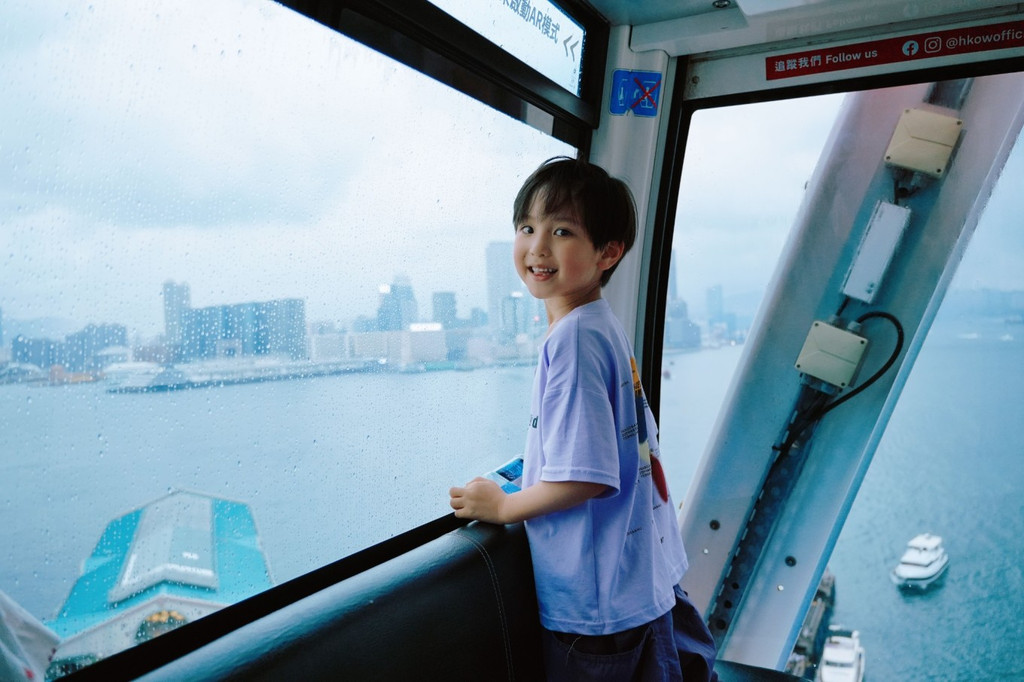我和这个小不点一起看过很多风景,但却从没想过,会和他一起拥抱这座城市, 香港 。