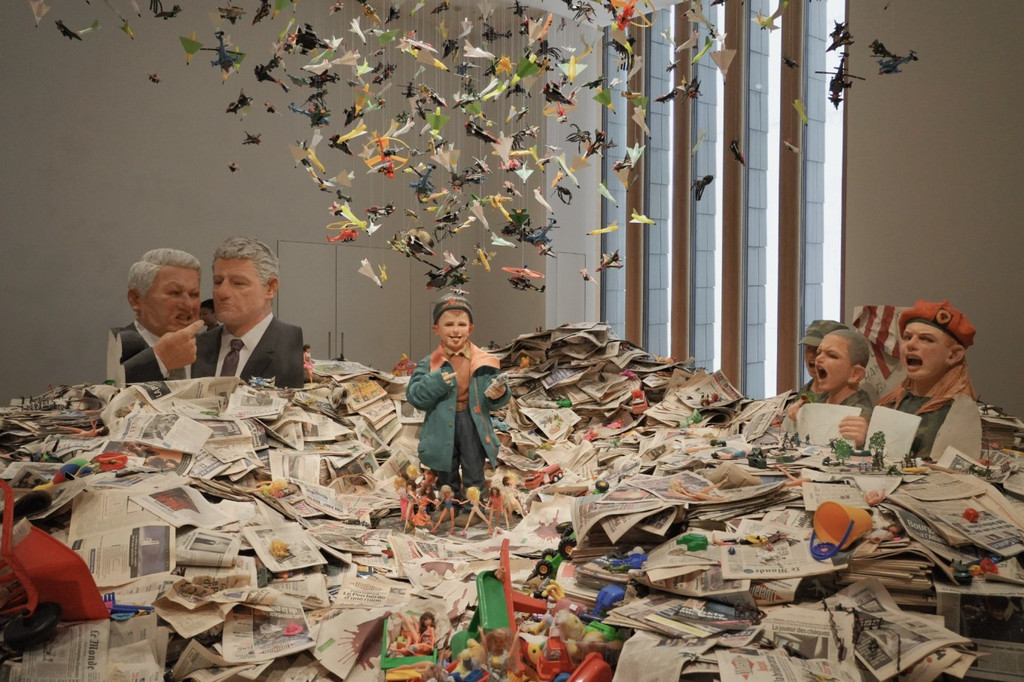 有些作品真的让人印象深刻,例如《纸上谈兵》《老人院》,都是可以360度围观的作品,而这些作品流露出来的讽刺感,每个人都有独特的理解。