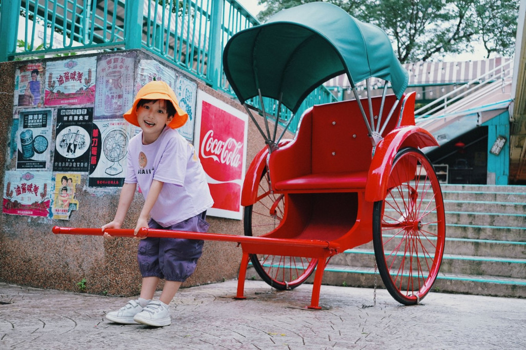 缆车到站后,便穿越到了七八十年代的老 香港 ,特色的霓虹招牌,复古的绿色老爷电车,怀旧港式传统小吃,属于那个年代的 香港 老大街