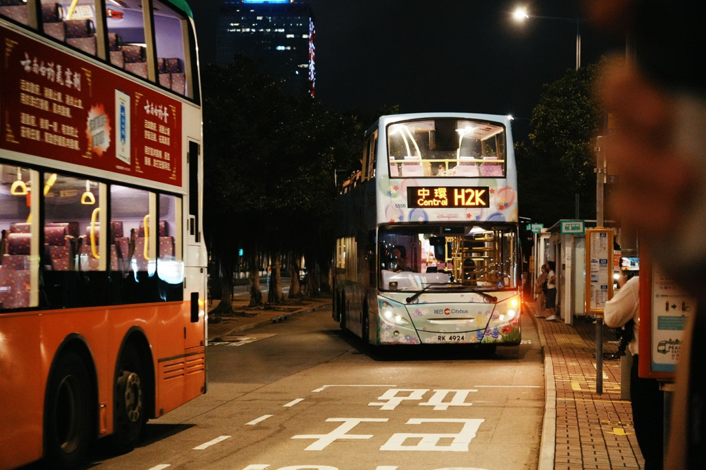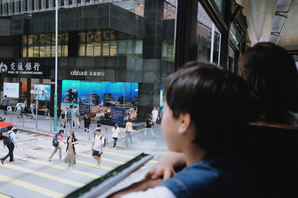 人力车观光巴士分几条线路,但建议来哪辆上哪辆,只要能坐到二层敞篷位置,风景都不差。我们坐的是中环H2K,途径海底隧道,到尖沙咀海港城~
