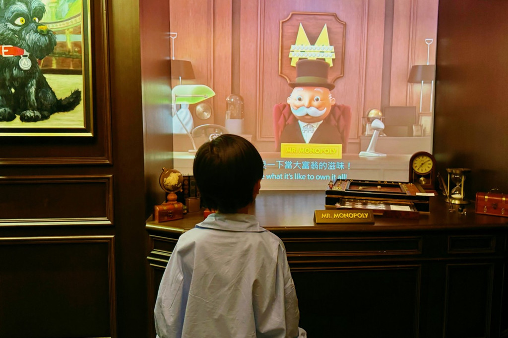 我们跟着工作人员开启了一场大富翁冒险世界,不仅能看到各种珍藏版的大富翁棋盘,还能体验里面的各种游戏场景。