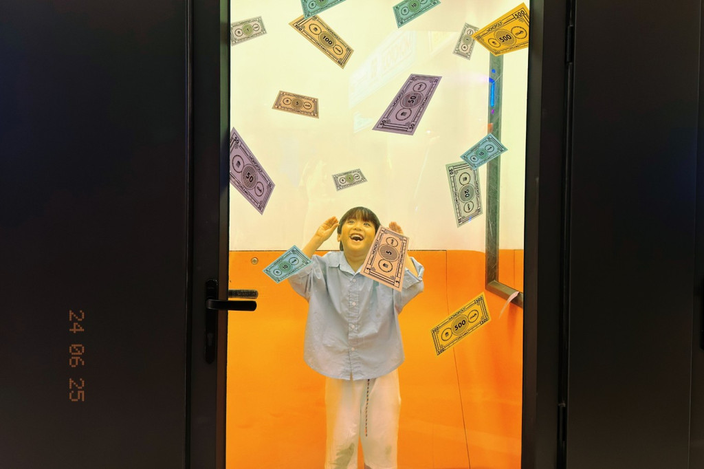 最好玩的要数抓钱游戏了,当游戏纸币从天而降,大朋友、小朋友都玩的不亦乐乎!抓到的纸币还可以作为代金券在礼品点买东西哦~