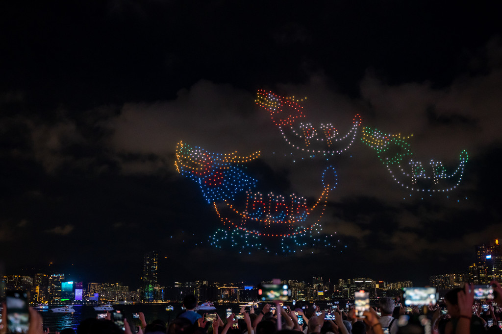 恰逢端午节,在维港欣赏到了一场震撼的无人机表演。数百架无人机在空中编织出各种端午节有关的图案和文字,粽子、龙舟、端午快乐·····为节日增添了几分浪漫与神秘。