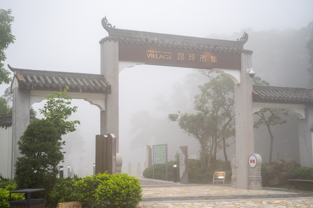 来到昂坪市集,此时的山顶早已被云雾所围绕,整个市集都好像布置在仙境一般。