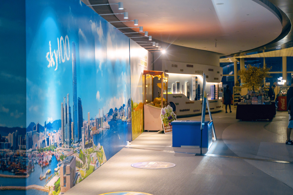 乘坐超快的电梯来到天际100观光层,站在百米高空,将整个维港尽收眼底,高楼大厦如积木般错落有致,车流如织,人流如潮,一切都显得如此微小而生动。