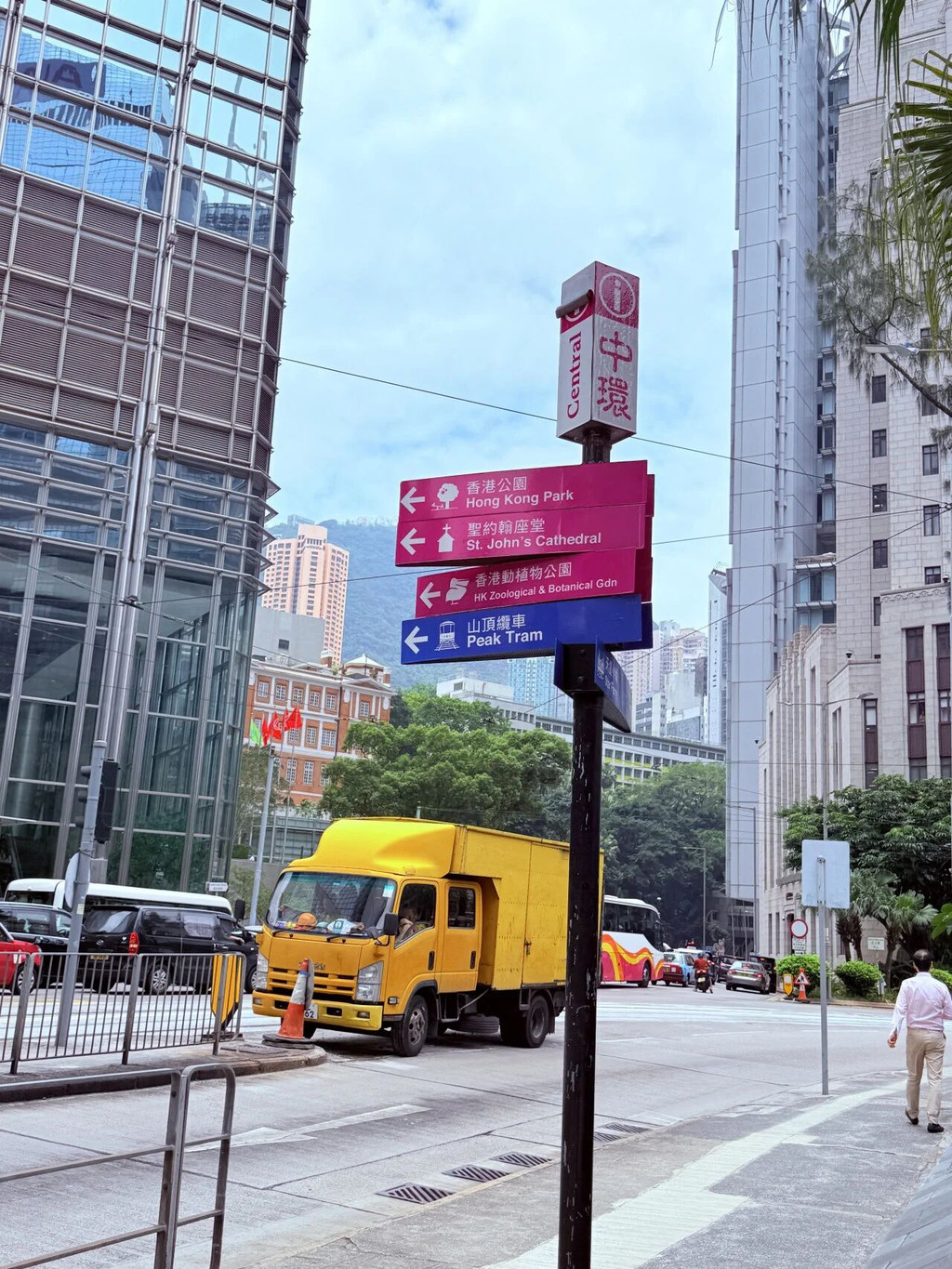 去太平山顶主要有3种方式:山顶缆车、观光巴士/小巴、徒步。这次我们选择从中环出发全程徒步登顶,一点点向上走。早上十点从福田口岸过关到落马洲,乘坐东铁线到终点金钟下,接着转荃湾线搭乘一个站在中环J2口出。