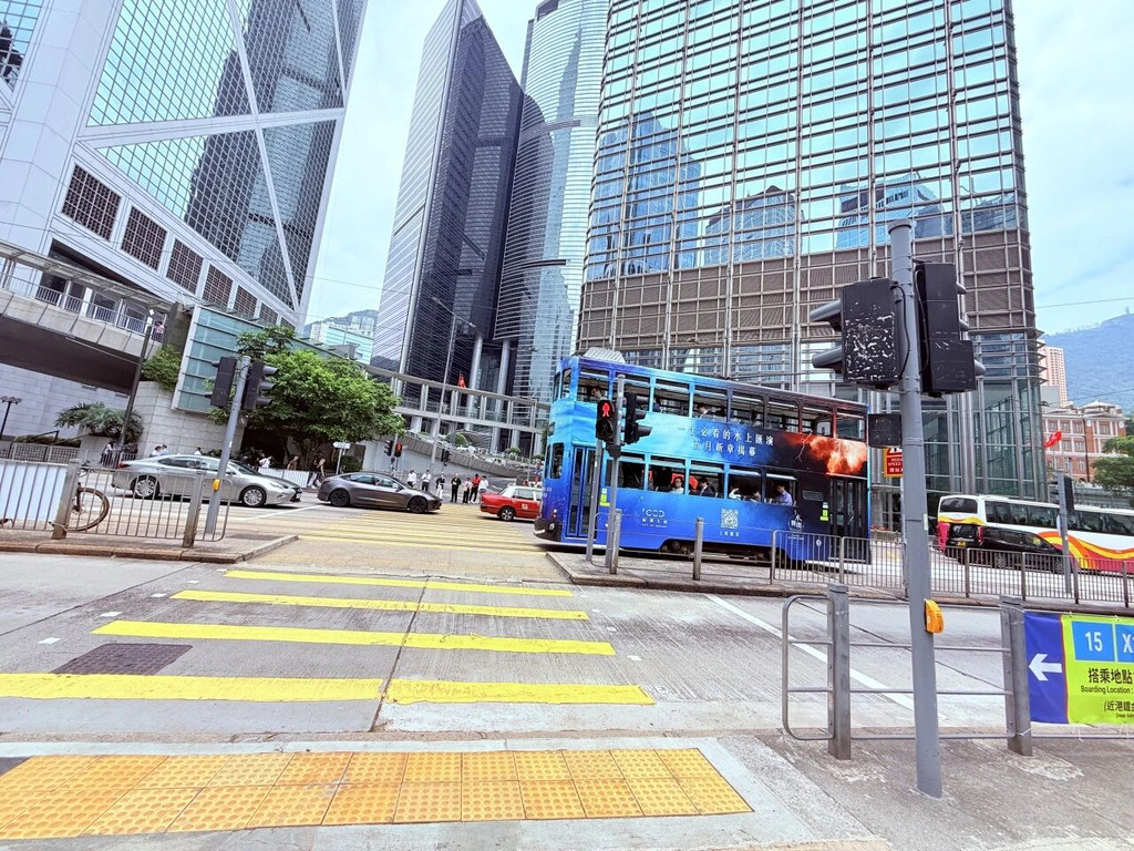中环街口高楼林立,这里是香港金融心脏。红绿灯在头顶交替闪烁,不同颜色的叮叮车来回穿梭,行色匆匆的上班族打扮得体散发着高级牛马味。在这里节奏像开了倍数,估计连睡觉也是一种对时间的浪费吧。