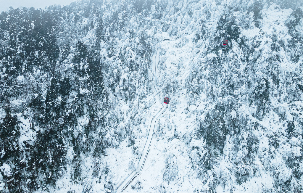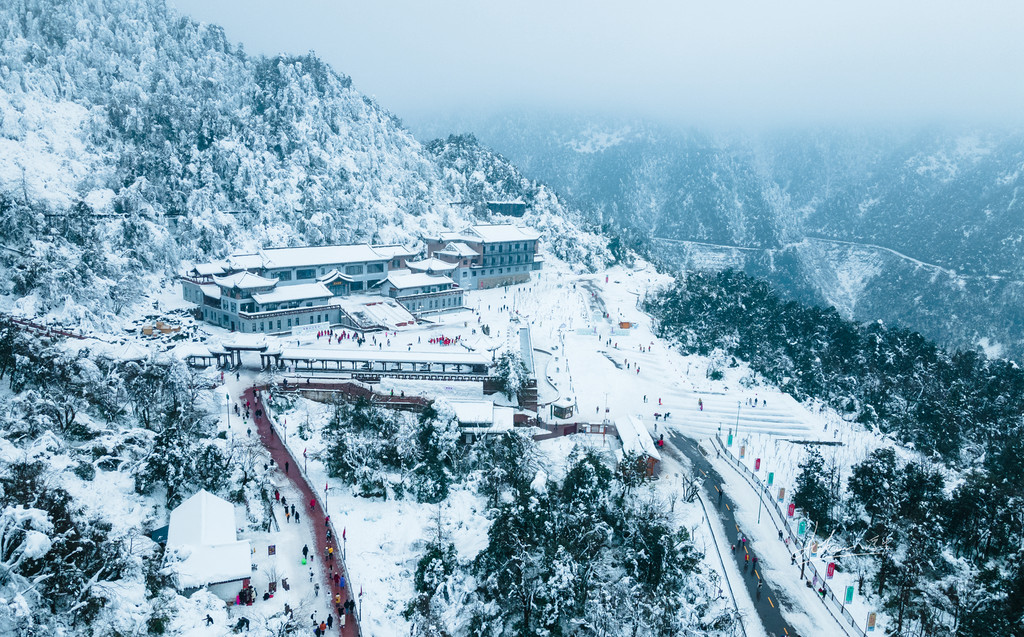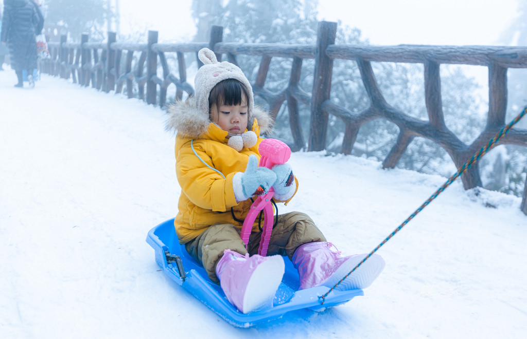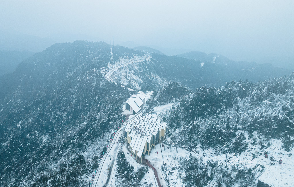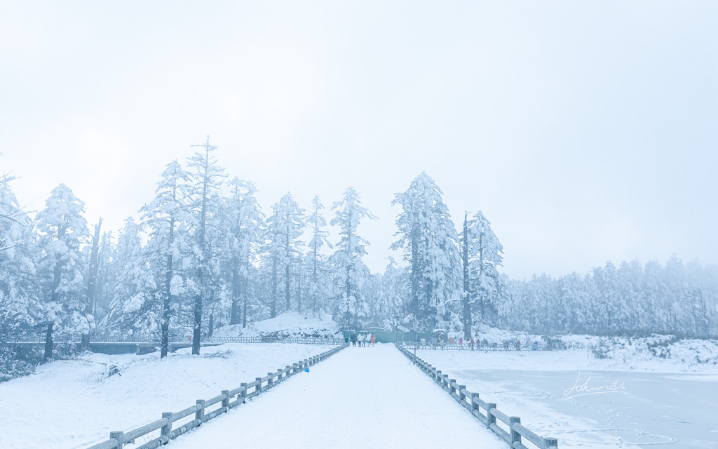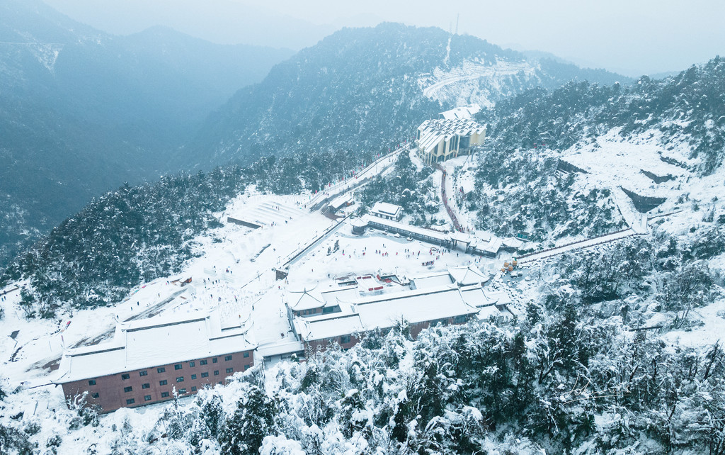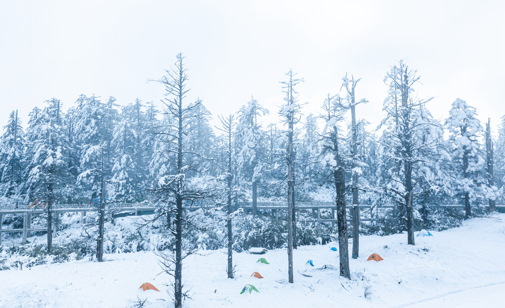 4.尽早(建议景区开园时间就到达景区大门开始入园)进入景区乘坐索道上山,乘坐完第一道索道后,继续乘坐第二道索道直达山顶,先无需过多停留,因为整个山顶的观景栈道都有雪,边走边玩越往深处走,游客密度会逐渐降低,游览杜鹃园观景平台,到达 象尔山庄 ,有专门规划出来滑雪耍雪的区域,如果天气给力还可能在此处的观景平台看到云海,到达象尔山庄的时间在12点左右是最合适的,在这里吃午餐或者耍雪都可以,游玩到1点30左右,个人建议带娃出行或是体力一般的朋友根据个人情况适量徒步,尽早往正角寺乘坐索道返程,体力好并且还没玩够的朋友可以继续考虑走完接近6公里路程(沿途的雪景同前半段基本差不多的)。来到索道上站(正觉寺)乘坐索道下行至索道下站(古佛坪),在这里可以继续看看冰雕雪雕,以及在广场较空旷处再玩玩雪。在3点30前乘坐金花桥索道返回至景区门口,这样就能完美的避开清晨和下午的客流高峰,不用过多担心将时间耽误在排队等候上。