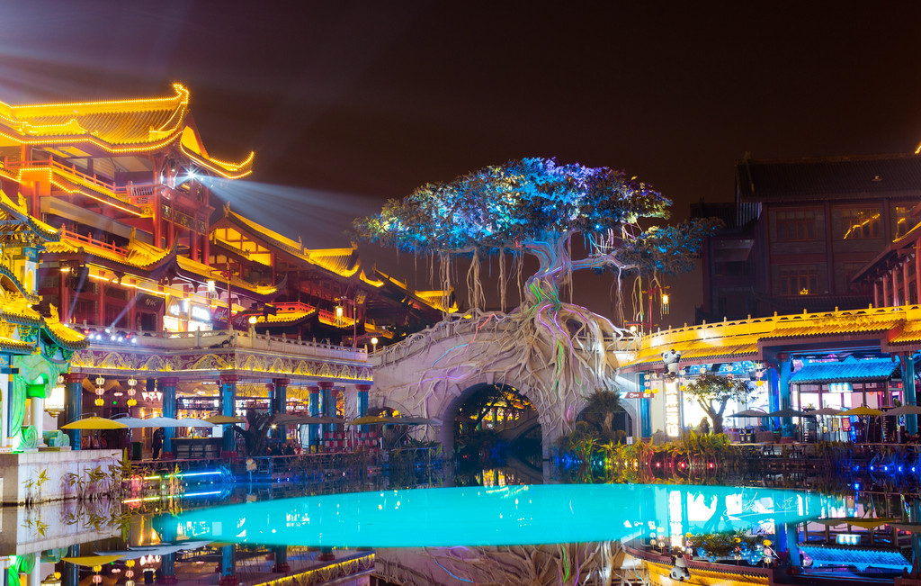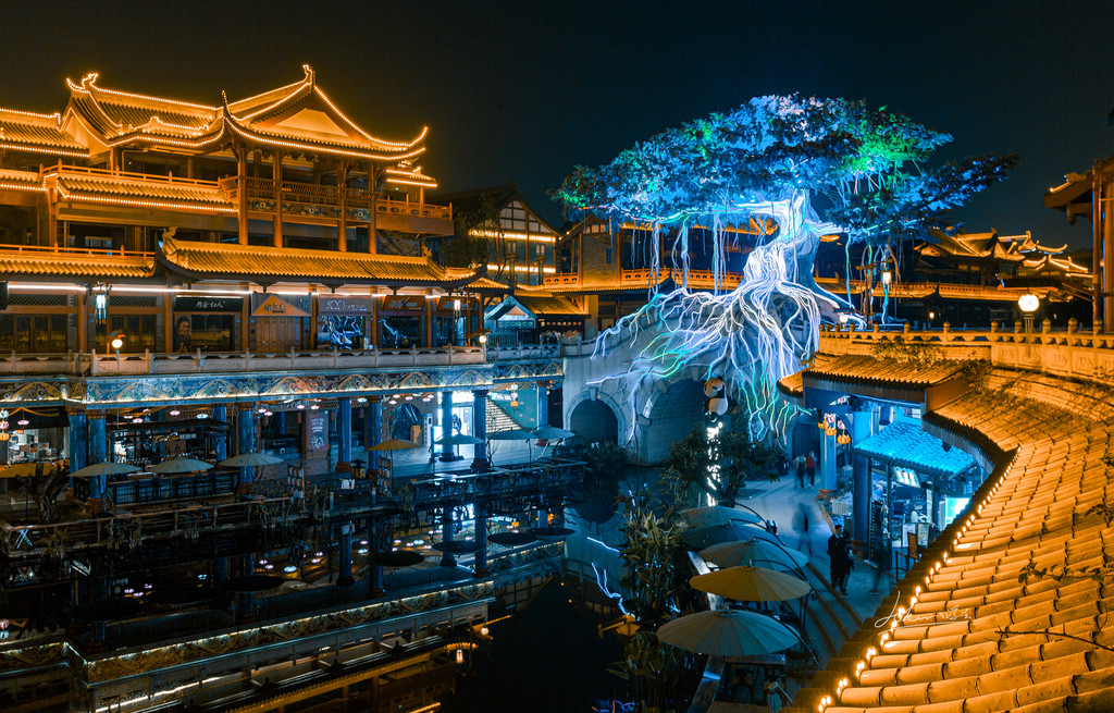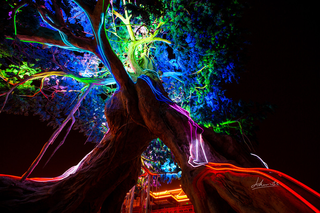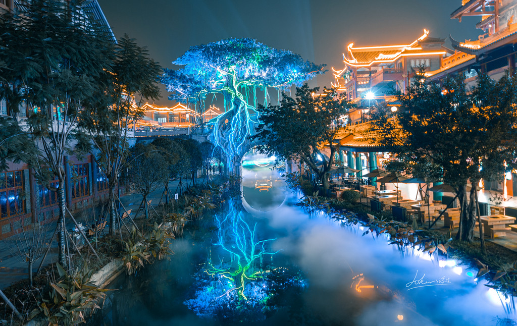 当然,来到水街一定不能错过,标志性的灯光巨树,到了晚上灯光亮起,不断变换的颜色,是一场非常炫目,吸引眼球的灯光秀。