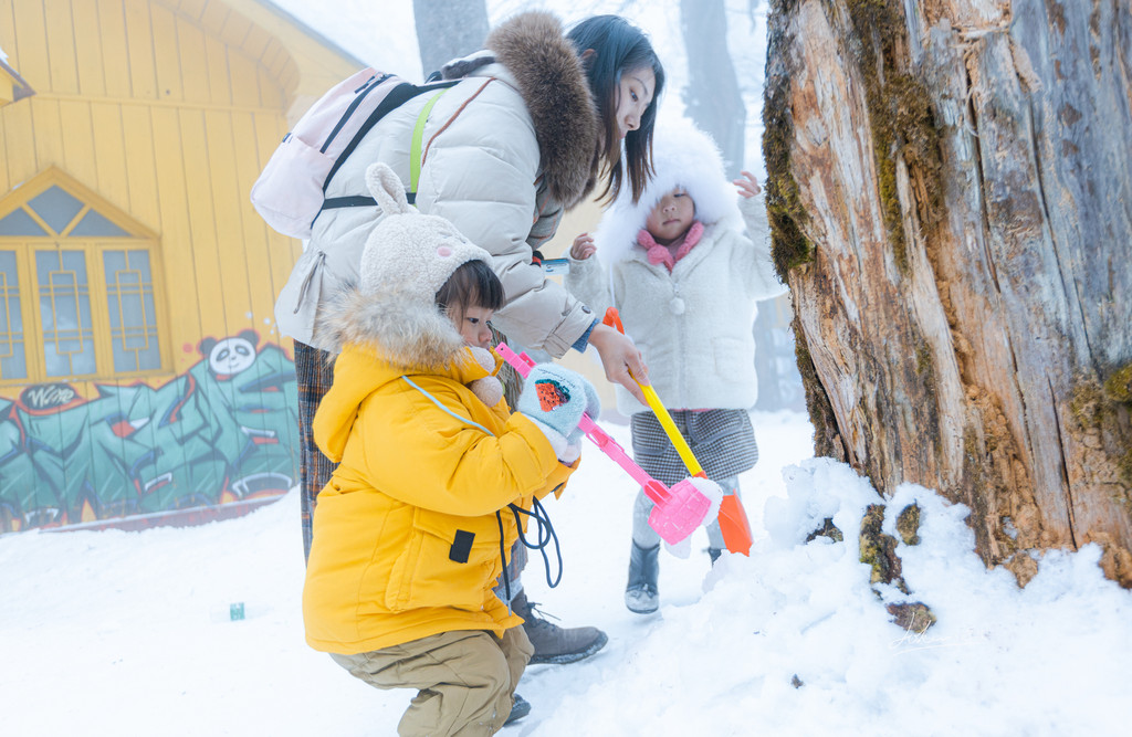 也可与朋友们一起在雪地上互动,尽情的欢笑享受这样的童话世界。